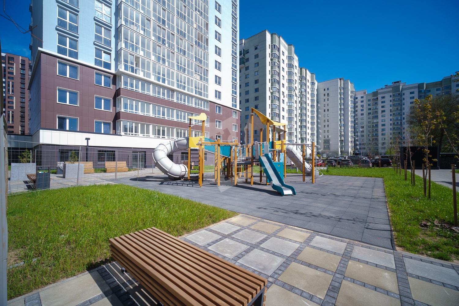 Современный, благоустроенный двор.