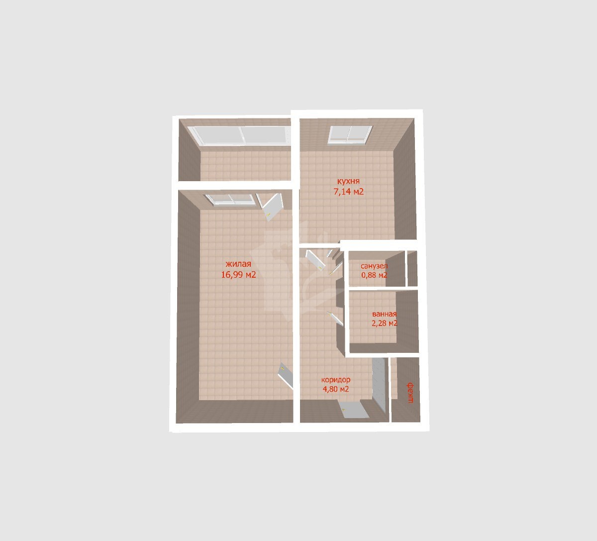 - просторная жилая комната с выходом на застекленную лоджию - 17 кв.м;