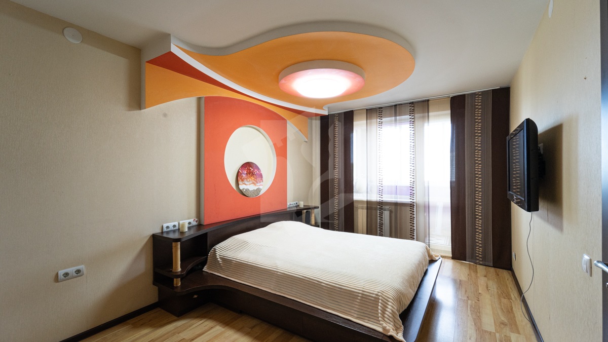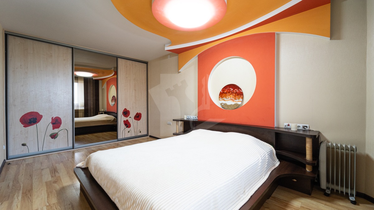 ⁃ спальня: шкаф-купе 3 м., глубина 60 см., кровать-подиум эксклюзивная с нишами.