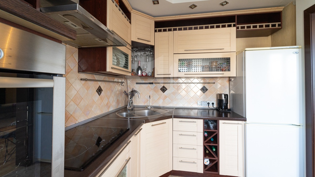 ⁃ кухня: духовка Bosch, электроплита Fagor, вытяжка Elica. Очиститель воды на два краника: один фильтрованная (для чайника, утюга), второй фильтр-минерализация.
