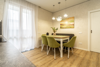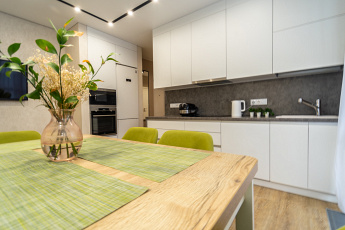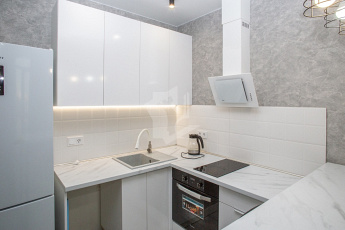 Итальянская керамика в с\у и на кухне, подвесные потолки, сантехника и бытовая техника известных качественных брендов (Bosch, Samsung, Sony, Grohe).