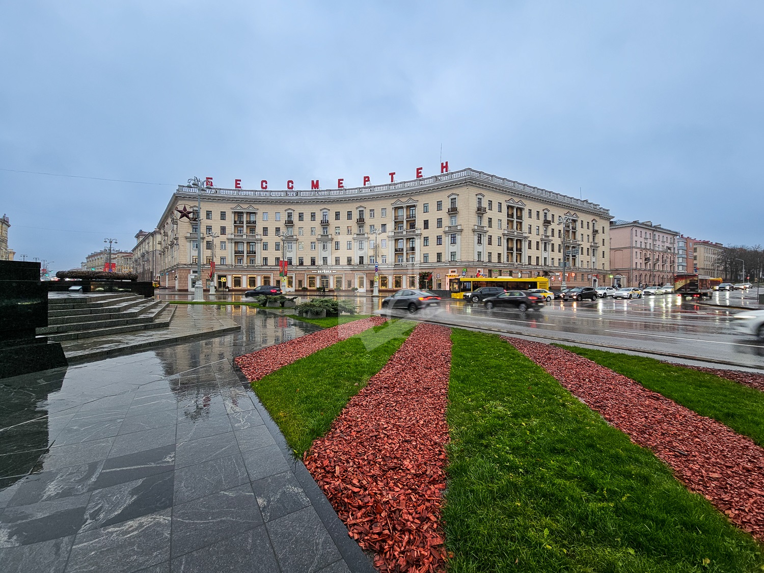 Этот дом всегда будет в центре внимания: монумент Победы, через дорогу расположен клубный жилой комплекс премиум класса DEPO, парк культуры и отдыха имени М. Горького, центральный детский парк, река Свислочь, парк имени Янки Купалы, сквер имени М. Казея, Большой театр Беларуси и Белорусский цирк, станция метро Площадь Победы, рядом с домом остановки наземного транспорта, во дворе достаточное количество мест для парковки автомобиля, продуктовый магазин, легендарное кафе «Берёзка».