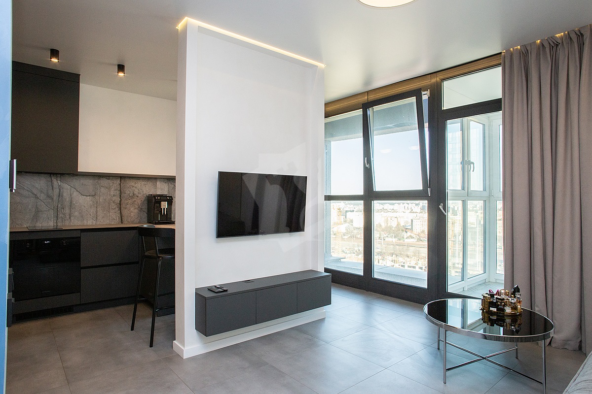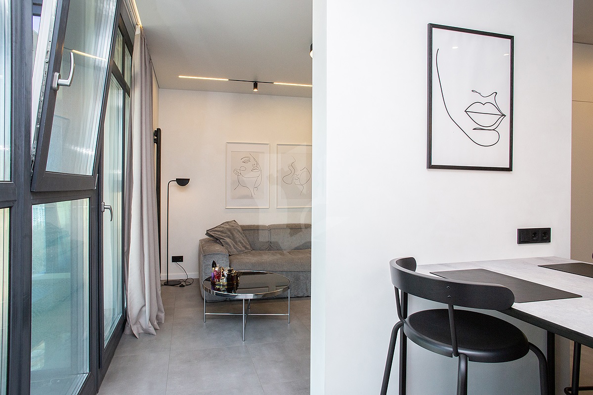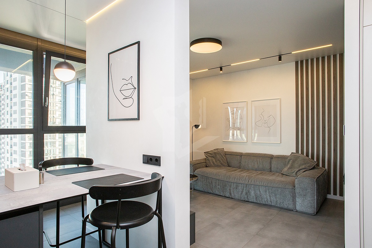 В продаже стильная квартира, с отличным дизайнерским ремонтом, площадью 44,8м2, в доме “Монако”, квартал “Средиземноморский”, Minsk World.