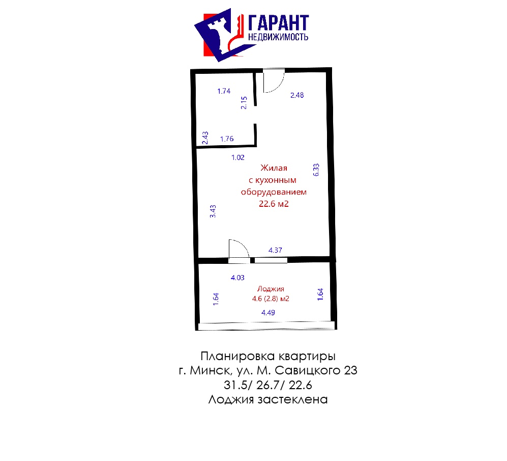 В продаже квартира-студия в ЖК «Минск Мир» расположена по адресу ул. Савицкого, 23.