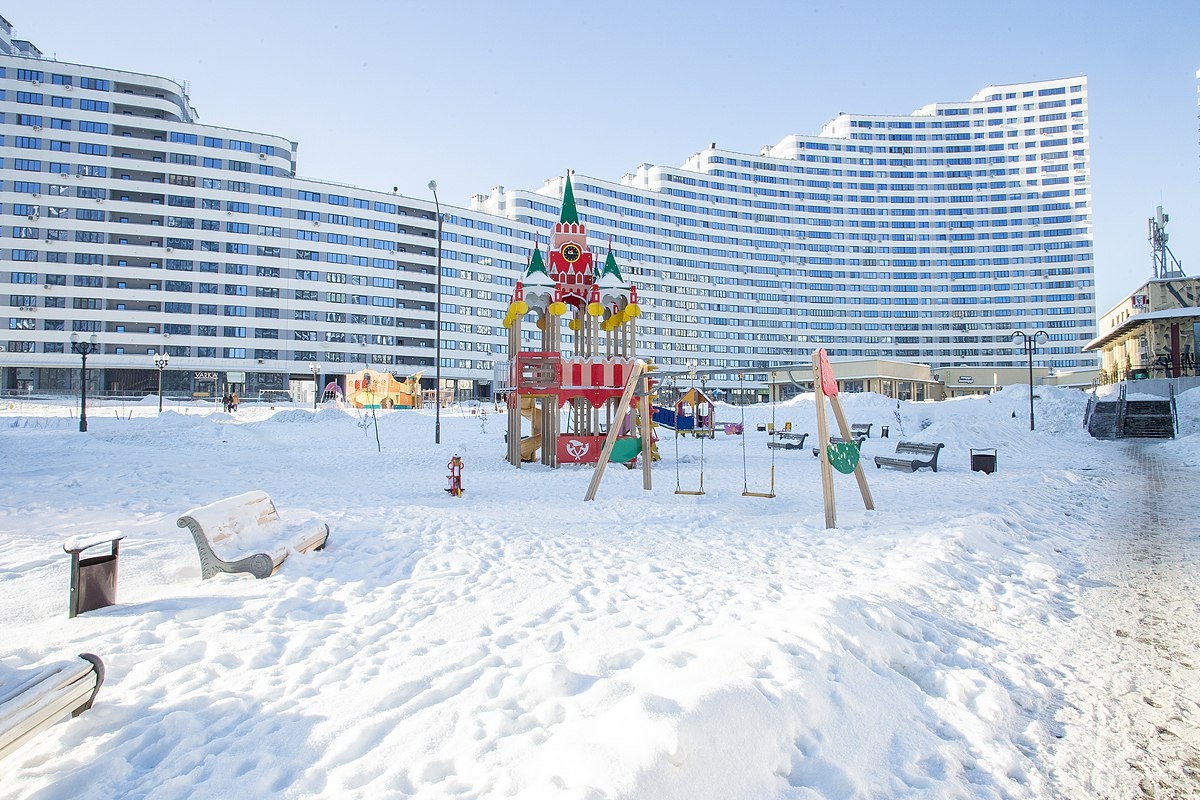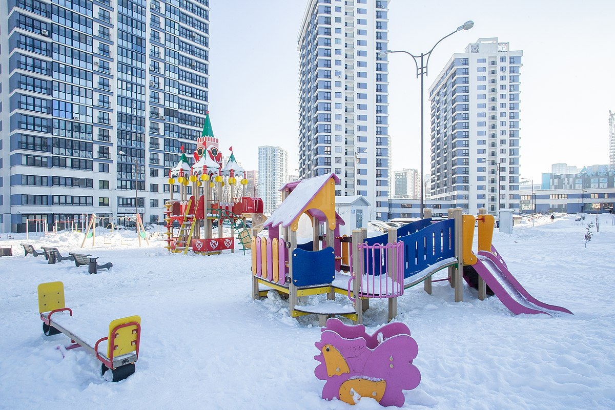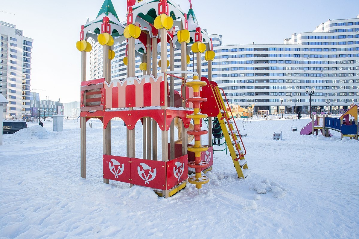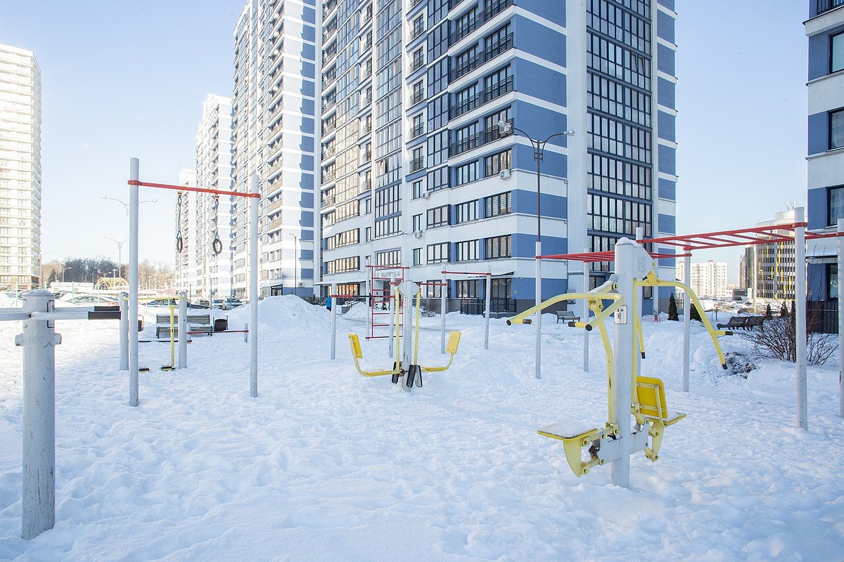 Во дворе множество разнообразных и функциональных детских площадок и большая спорт зона.
