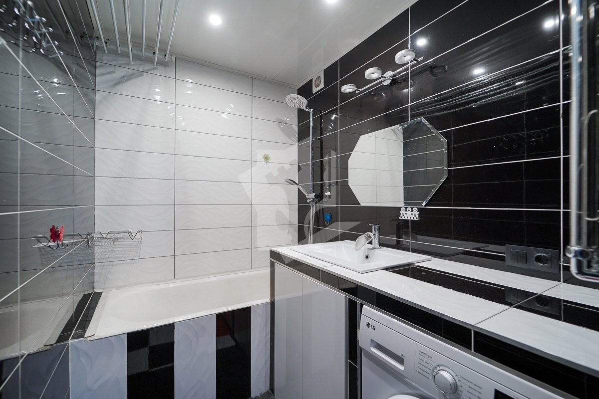 В прихожей и комнате натяжной потолок с точечным светом