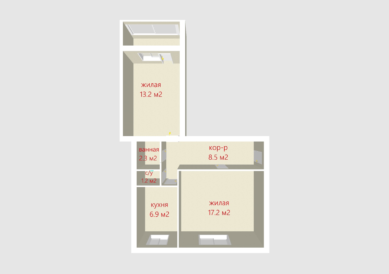 Квартира просторная. Две изолированные комнаты. Окна выходят на две стороны.