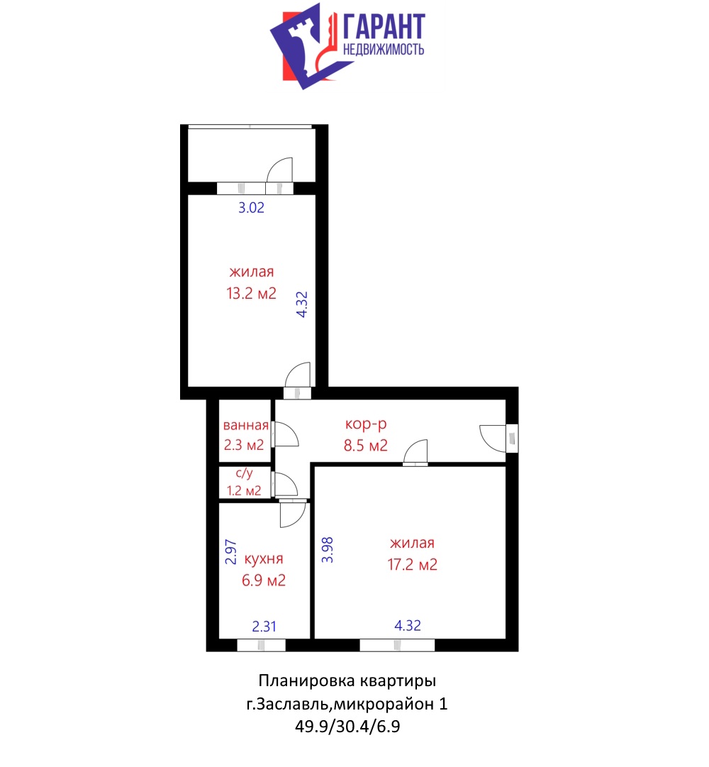 В продаже 2-комнатная квартира в центре г. Заславль, пригород Минска.