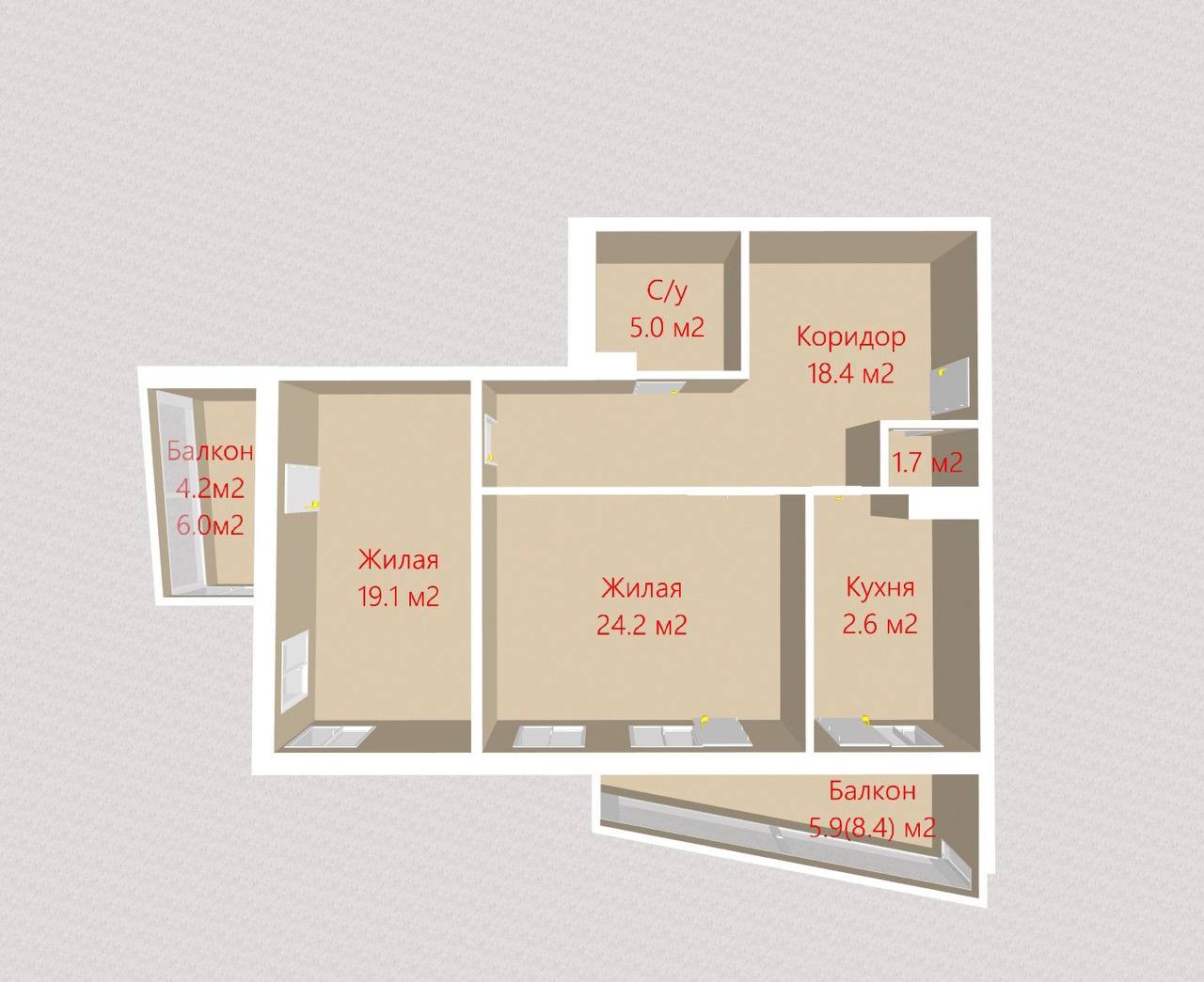 59.2 / 28.05 / 16.5 м²