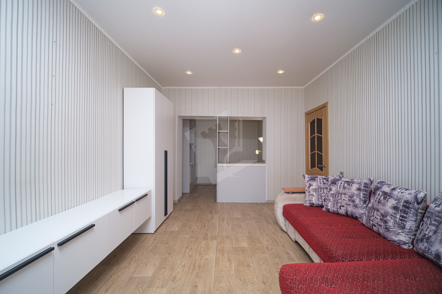 В продаже отличная 1-комнатная квартира в кирпичном доме после капитального ремонта. В квартире удобная планировка, просторная зонированная жилая комната, раздельный санузел, есть балкон, высокие потолки.