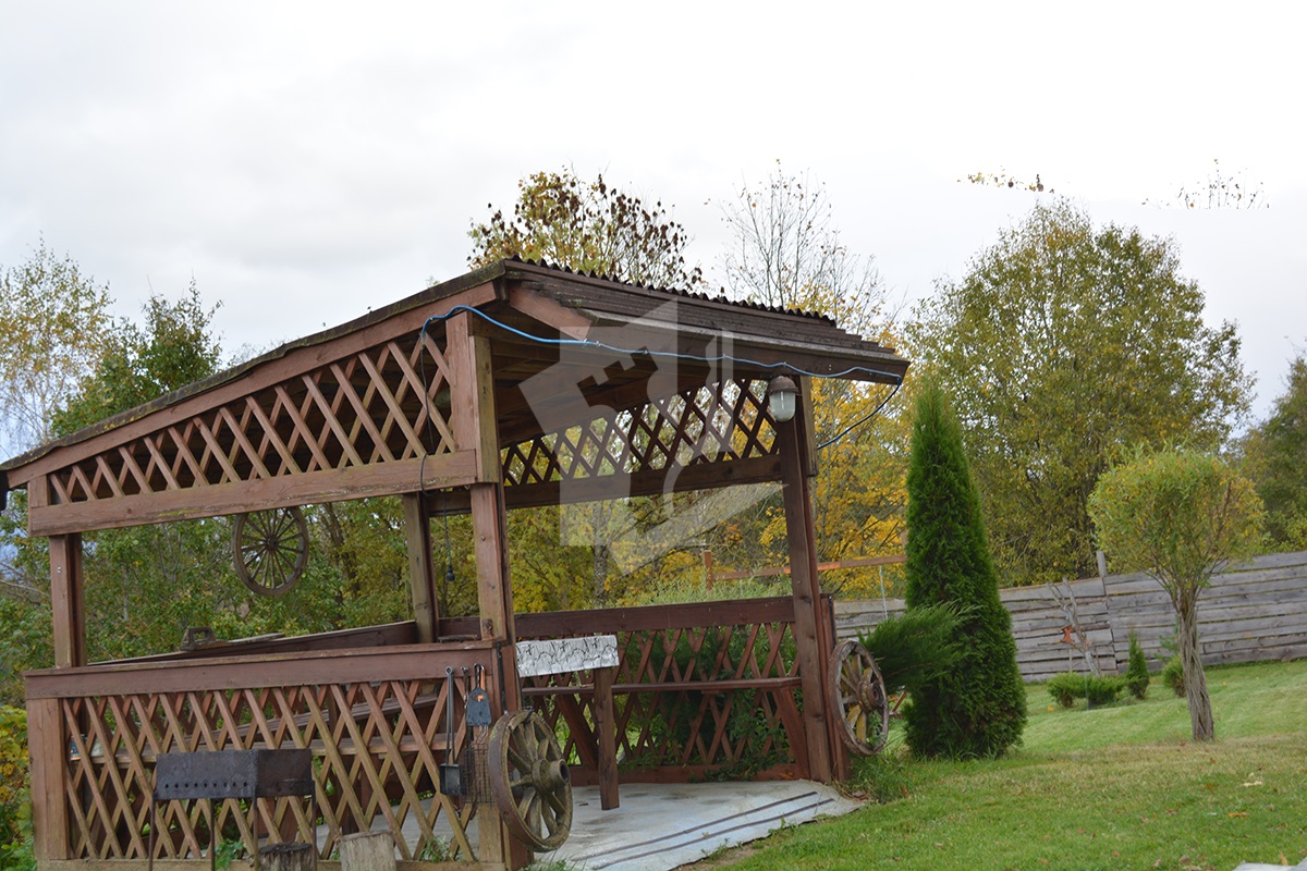 Рядом с домом распологается уютная беседка. Она наполнена светом и обеспечивает единание с природой.