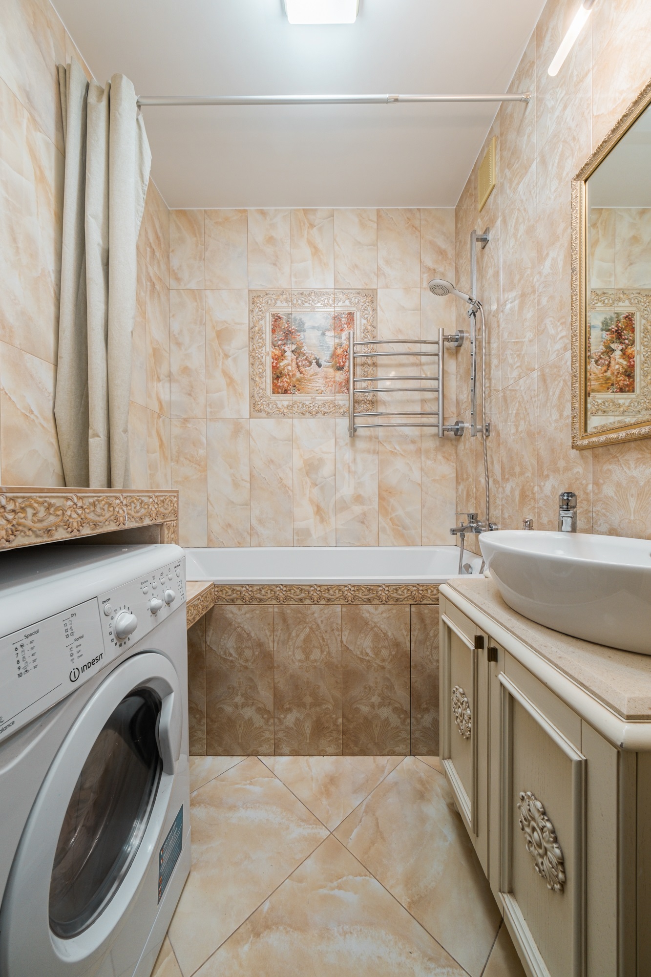 Ремонт делался для себя, использовались только качественные и дорогие материалы: прекрасная мебель и кухня из массива, каменная столешница и подоконники, итальянская и испанская сантехника и плитка, бельгийский ламинат, текстиль по индивидуальному проекту!