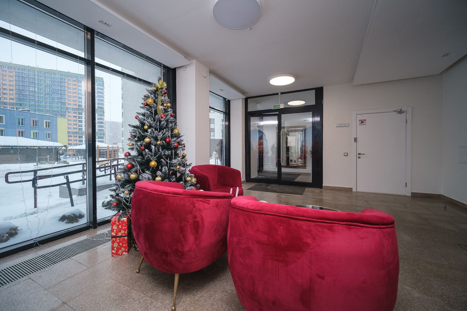 Новый, чистый подъезд, три скоростных лифта, комфортно и безопасно.