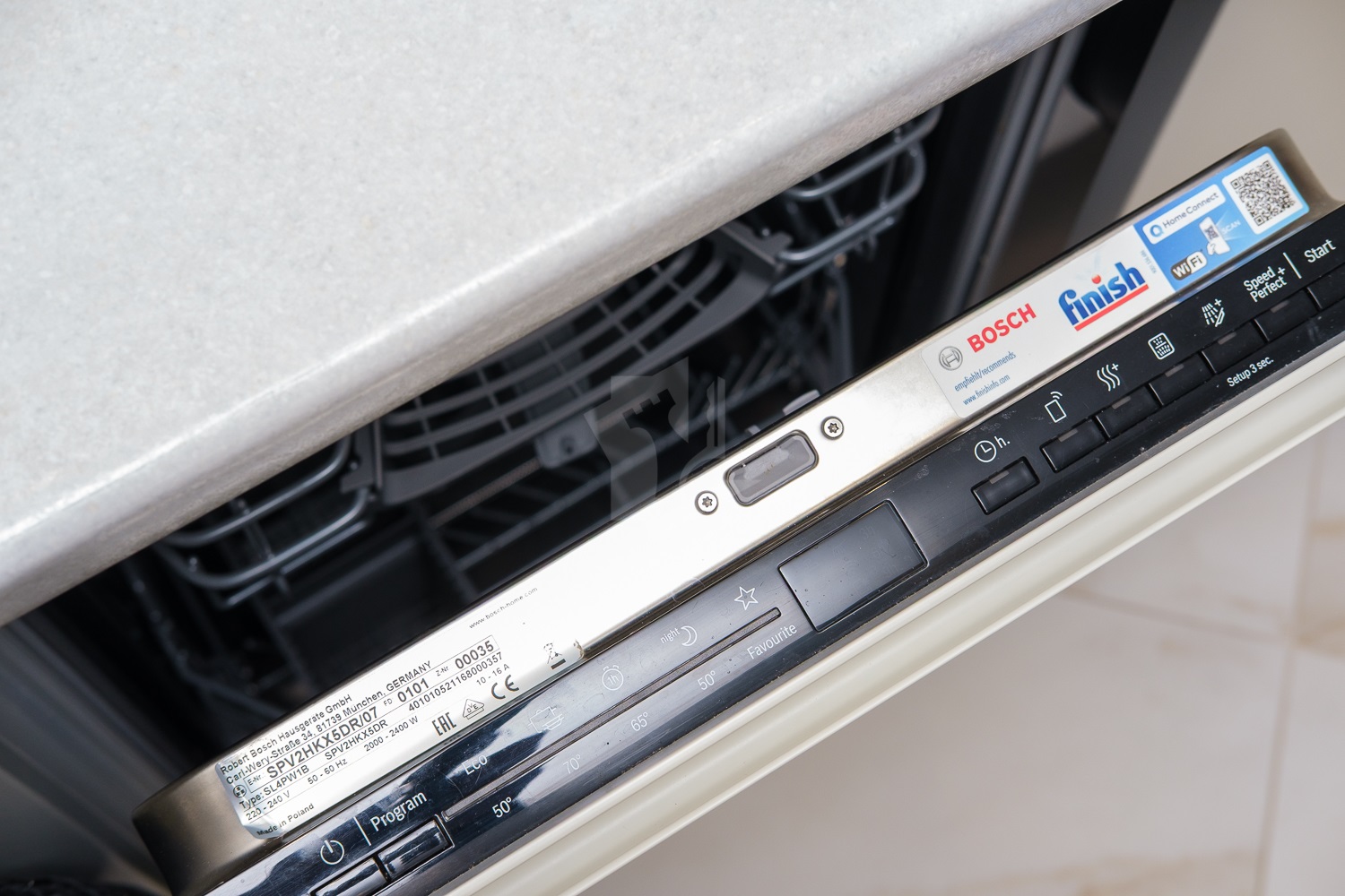 Кухня оборудована индукционной плитой Electrolux, духовкой, микроволновой печью Samsung, вытяжкой, посудомоечной машиной Bosch, встроенным холодильником и стиральной машиной Electrolux.