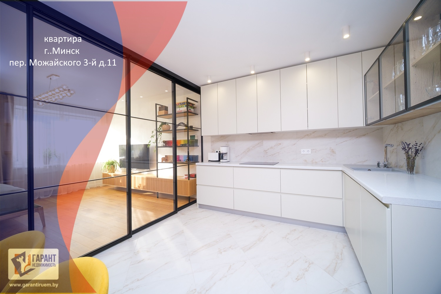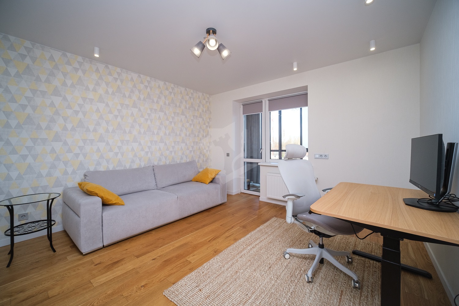 Современный дизайнерский ремонт с использованием качественных материалов. Корпусная мебель из натурального шпона. Пол покрыт паркетной доской из натурального дуба и плиткой.