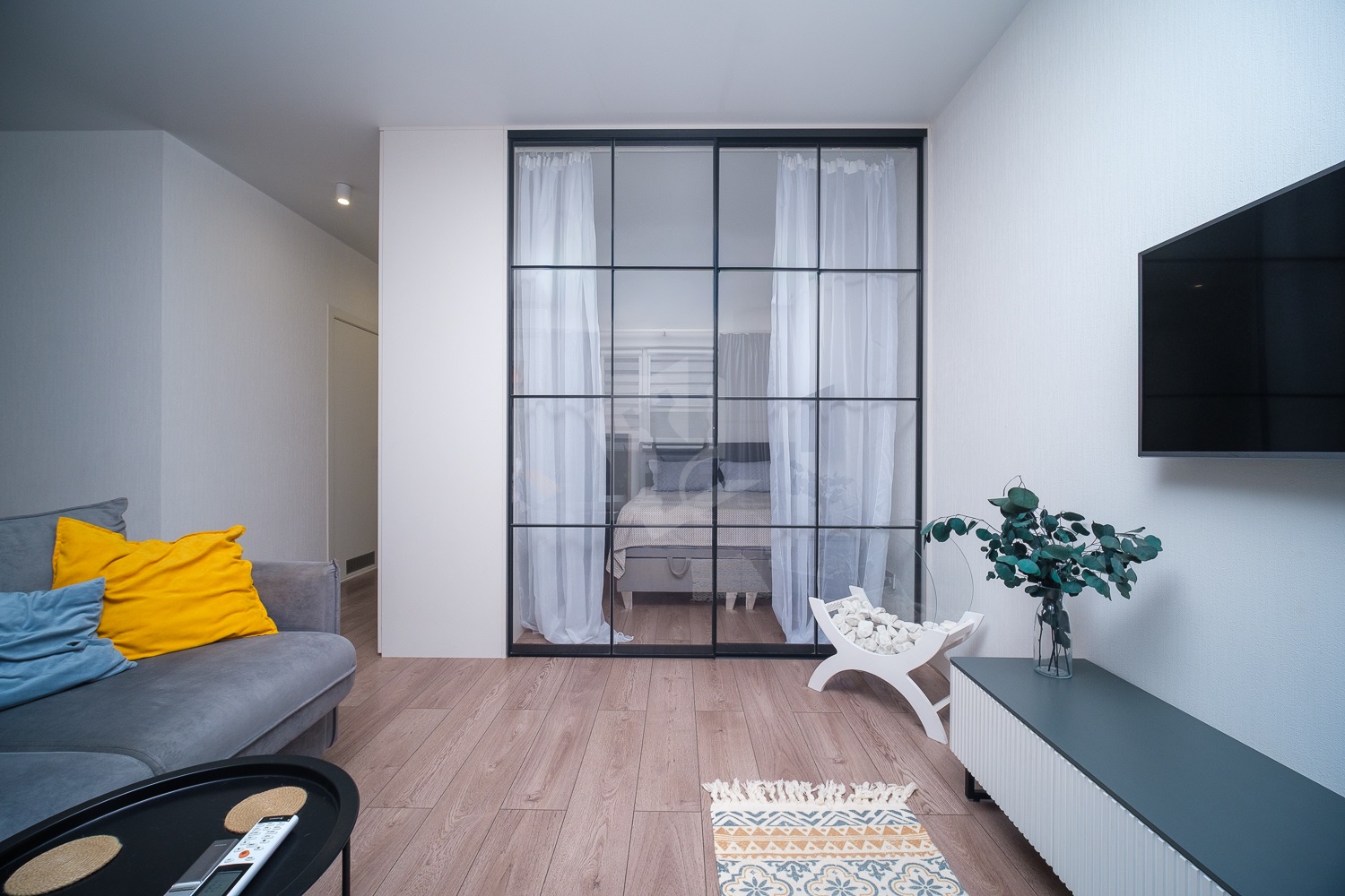 - продуманное зонирование с выделенным спальным местом;