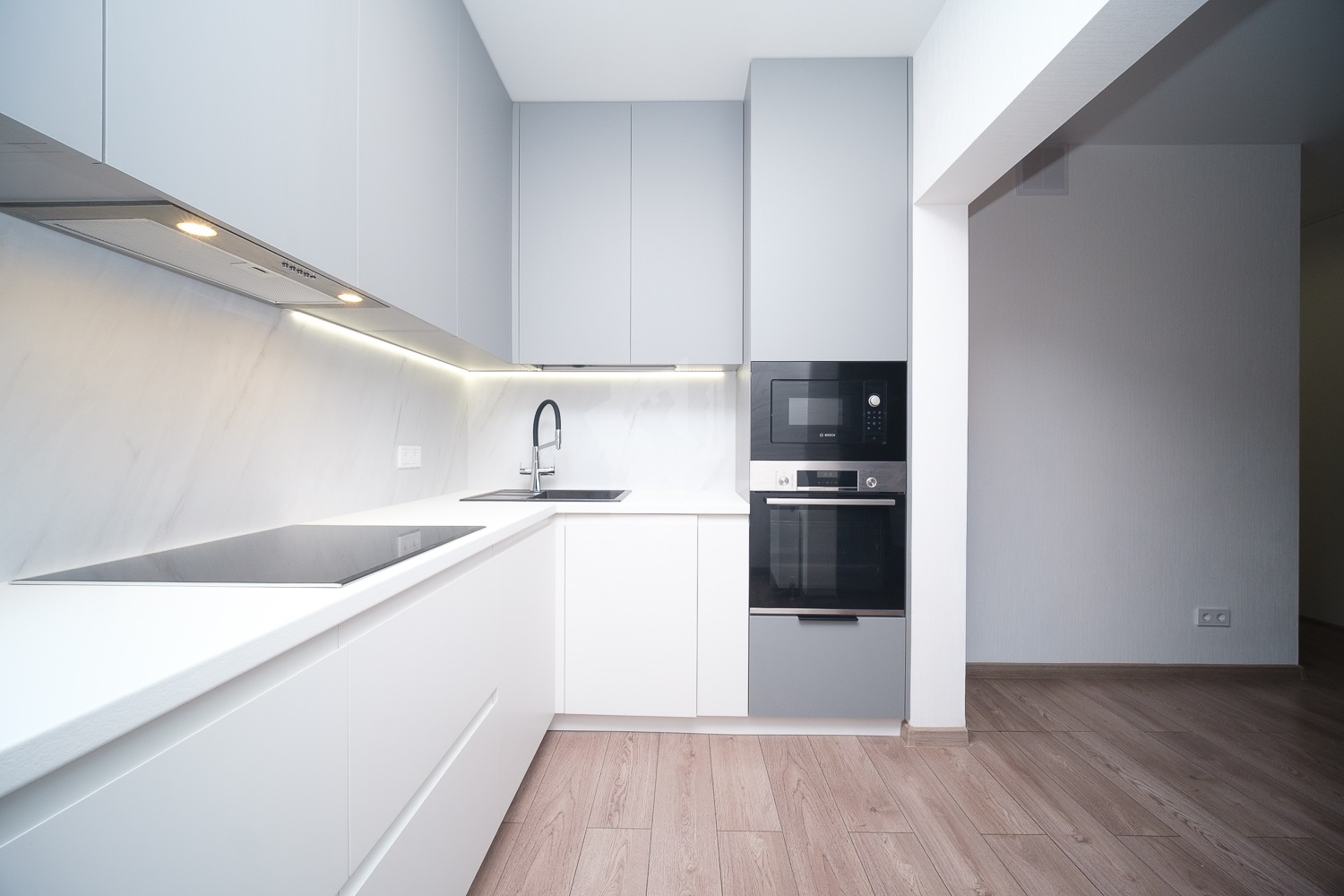 В квартире выполнен евроремонт сприменением высококачественных отделочных материалов:
