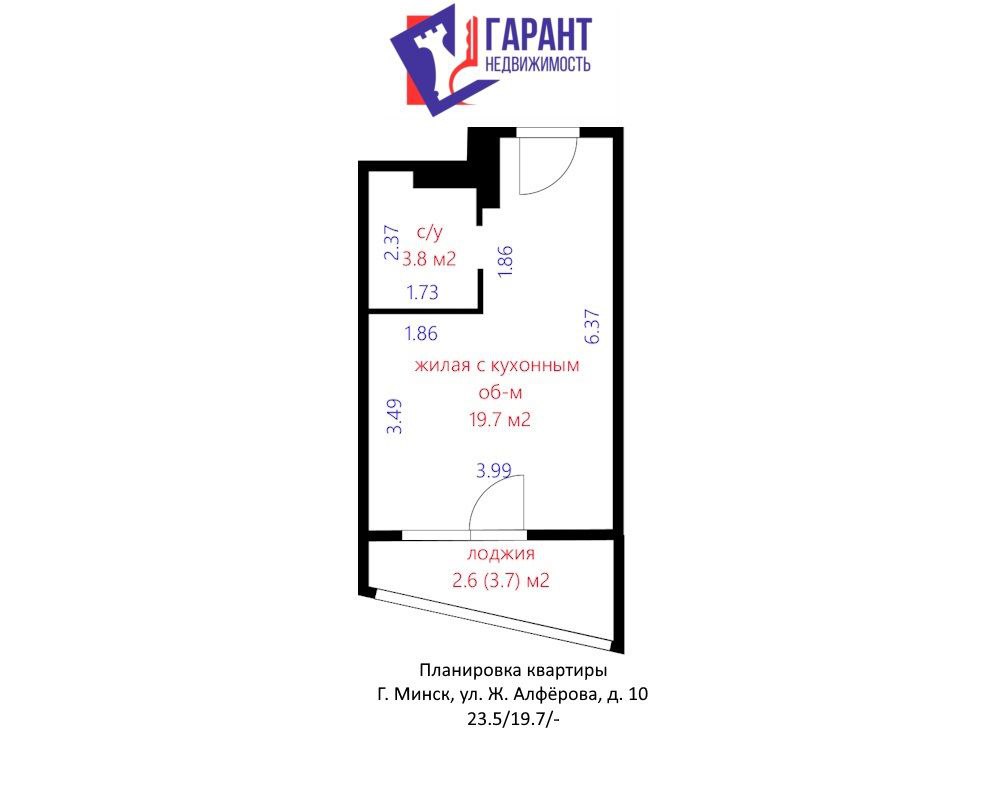 Площадь по СНБ 26.1 м2.