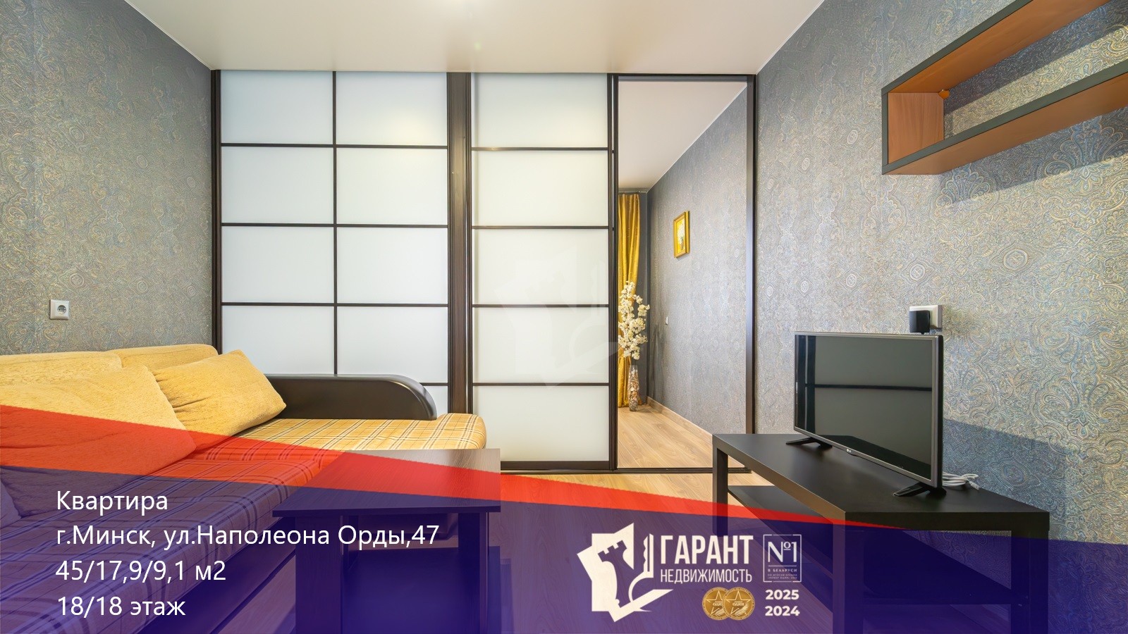 • Площадь СНБ – 45.0 м2, общая площадь – 42.6 м2, жилая 24.7 м2.