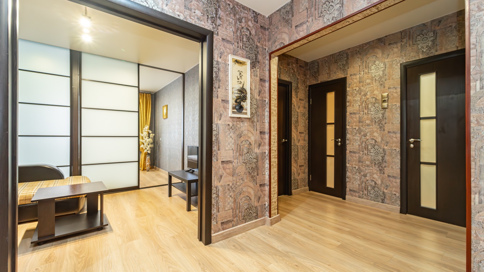 • 1.5 года назад выполнен косметический ремонт, в прихожей и комнате ламинат 33 класс, новые обои в темных тонах.