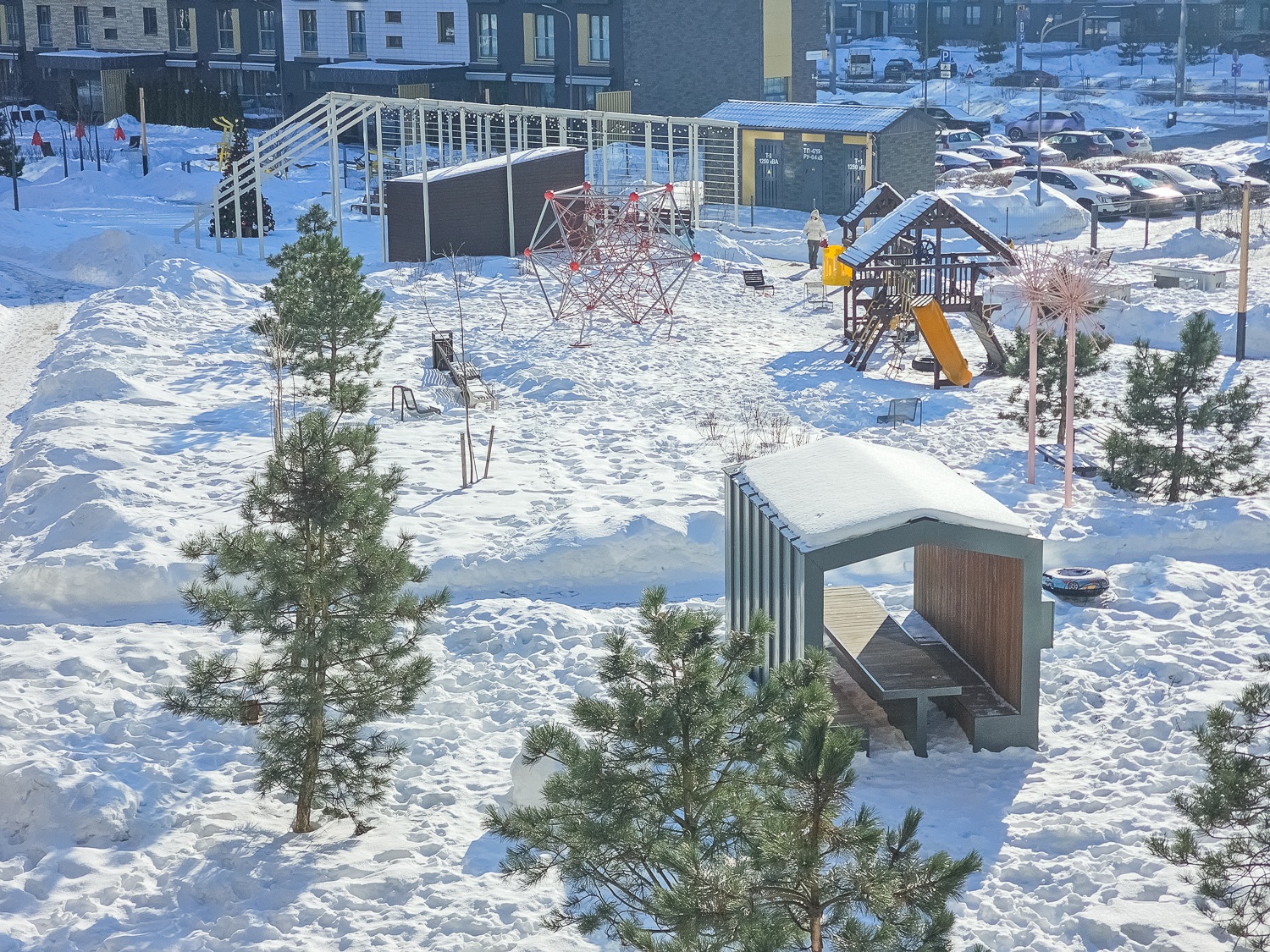 Дом находится в непосредственной близости от парка, где вы сможете насладится прогулками и активными видами отдыха. Подъезд с колясочной на каждом этаже, лапомойкой для домашних животных.