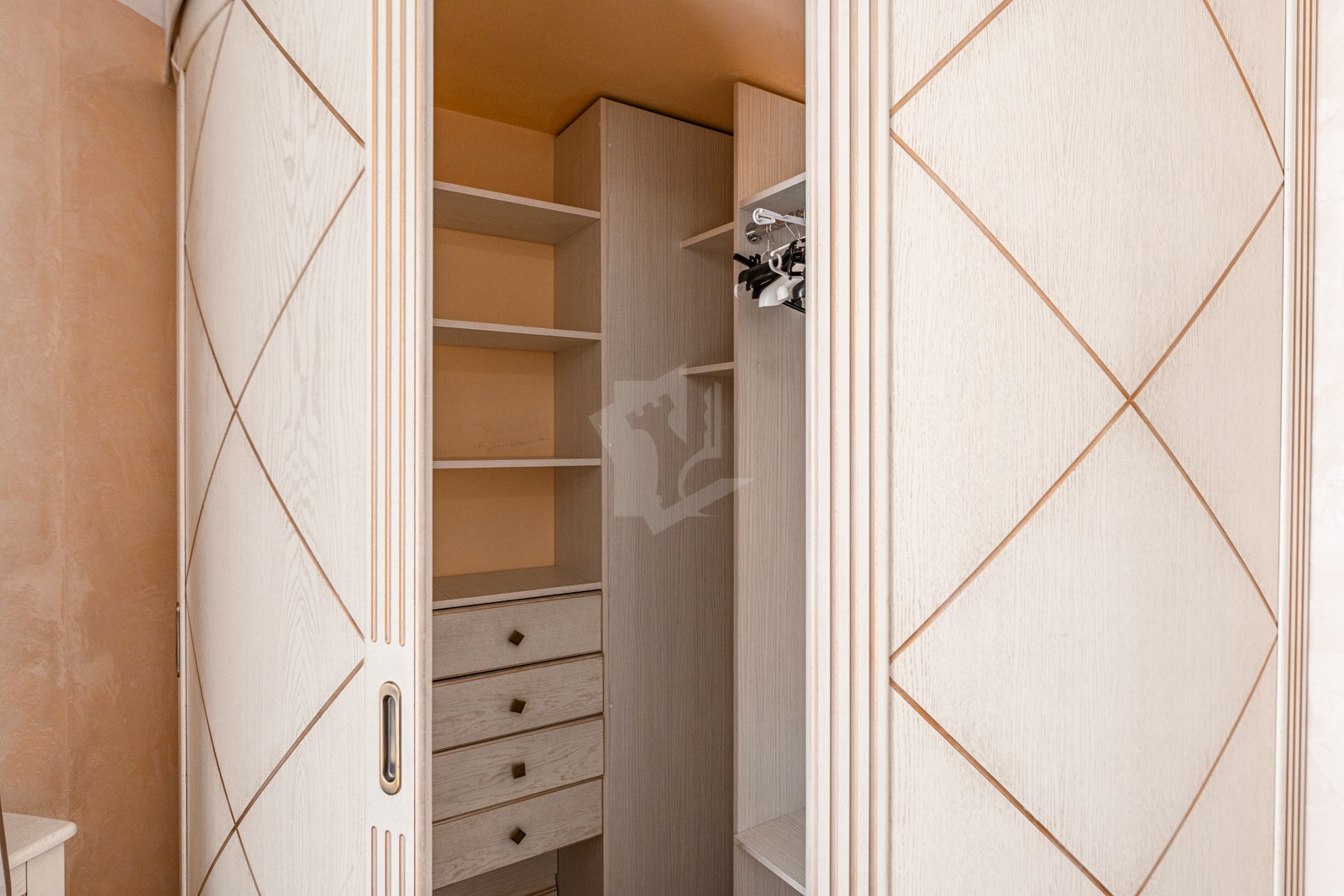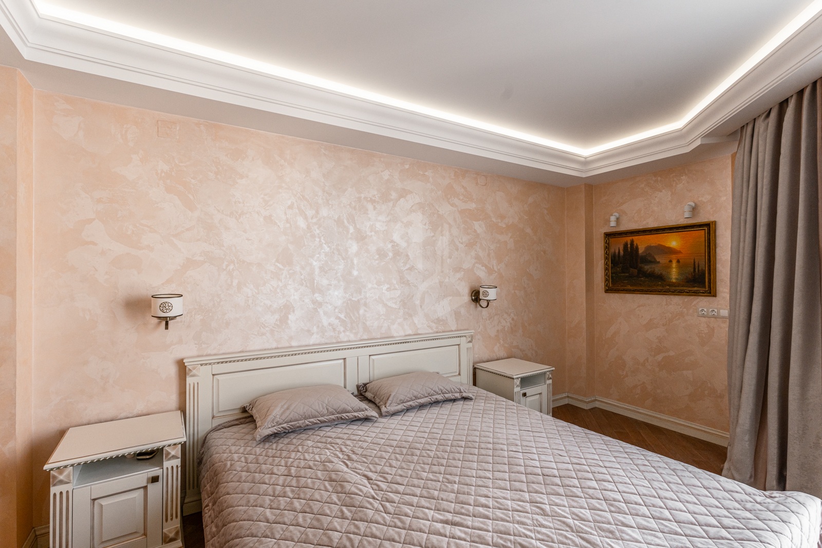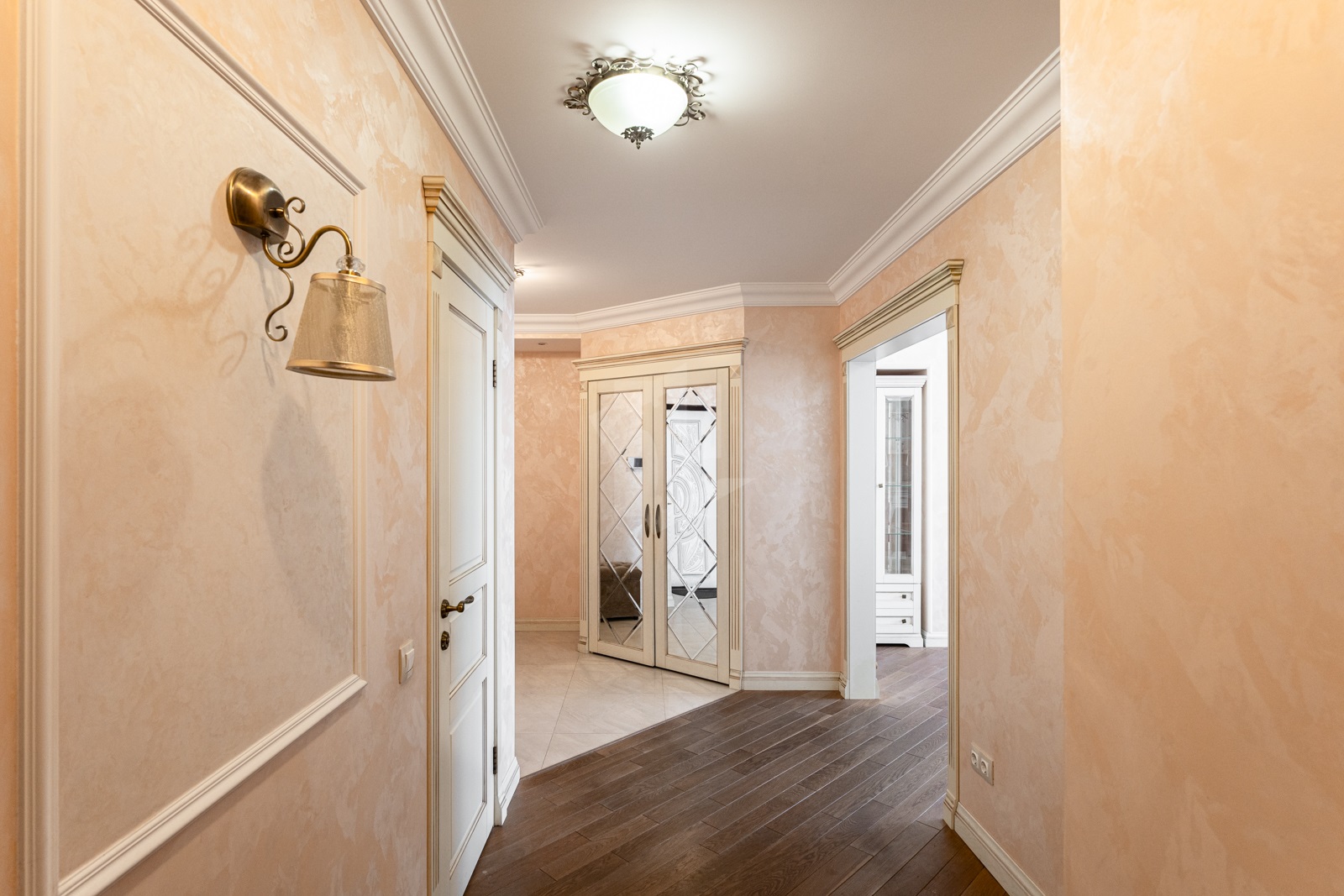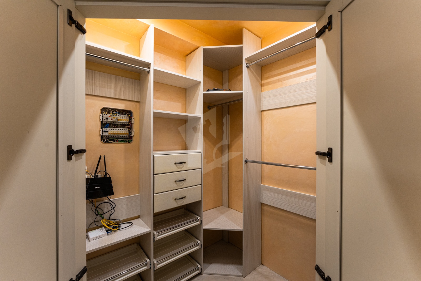 Вся мебель и межкомнатные двери выполнены из массива дуба, что создает особый уют и стиль.