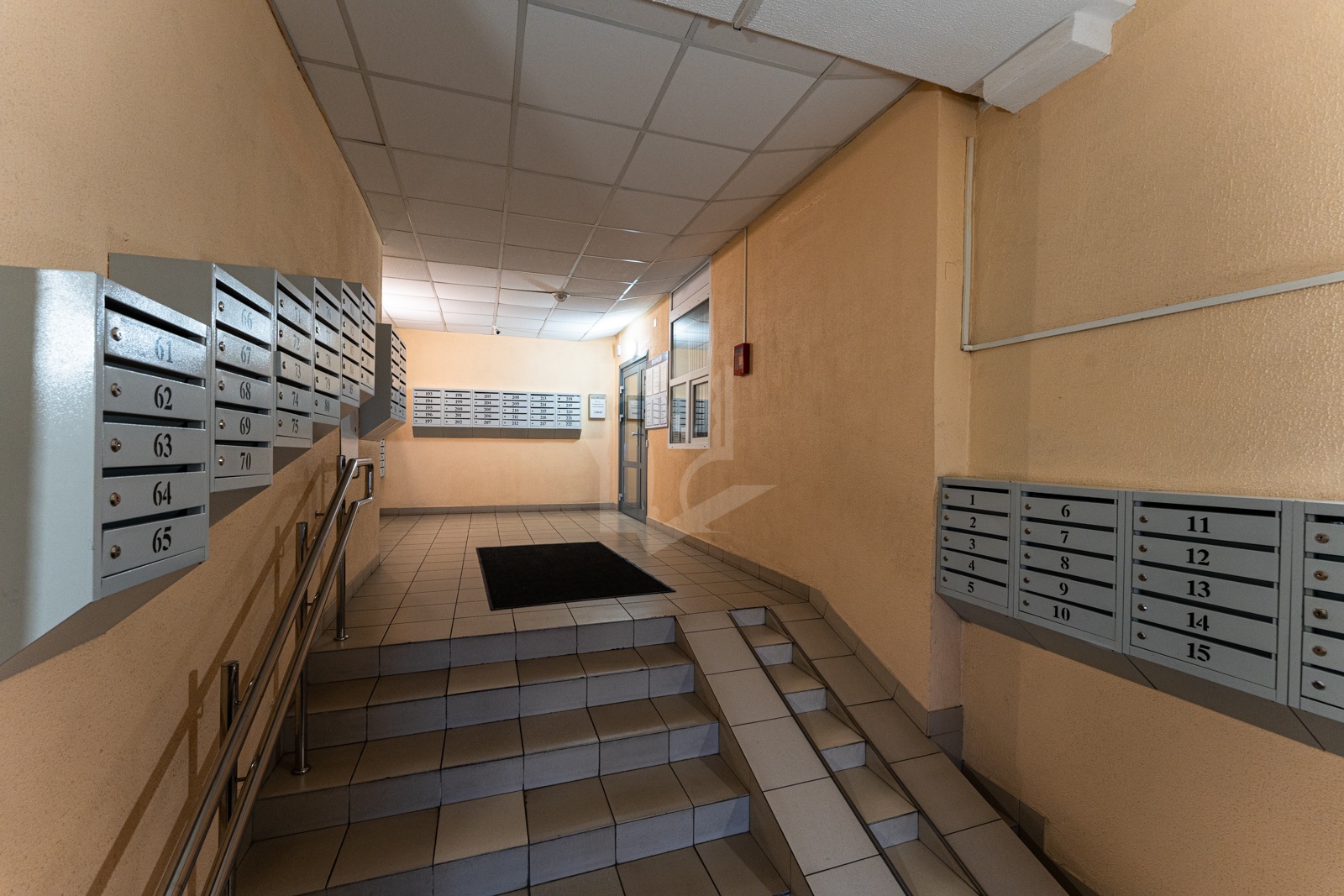Входная дверь — антивандальная и противопожарная (вес 160 кг, 3 завеса).
