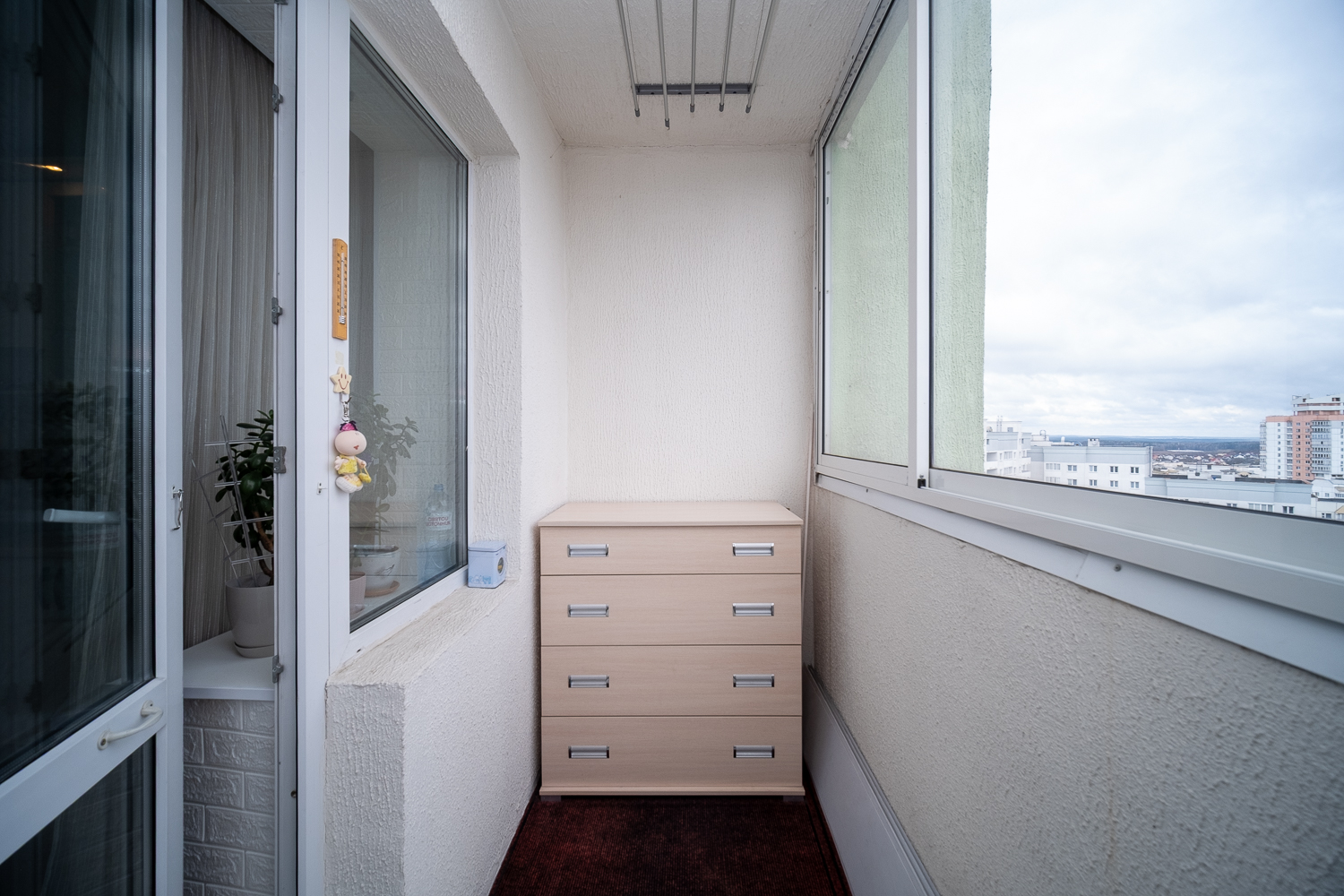 Преимущество 14-го этажа: Панорамный вид на город, отсутствие шума дорог и пыли, а также много естественного света в течение всего дня.