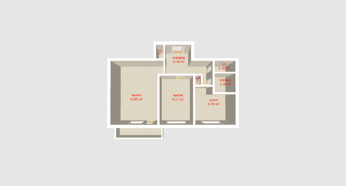· Планировка: Идеально подходит для комфортной жизни. Две изолированные комнаты (14,85 м2 и 9,17 м2) , раздельный санузел , практичные ниши позволяют организовать вместительные встроенные шкафы, освобождая пространство.