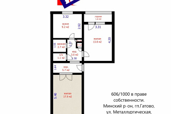 Доля в двухкомнатной квартире аг.Гатово, ул.Металлургическая, 20, корпус 3.