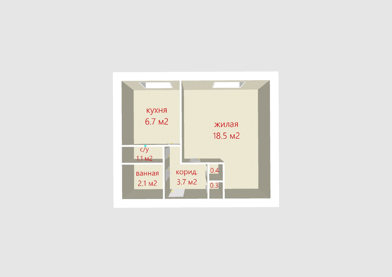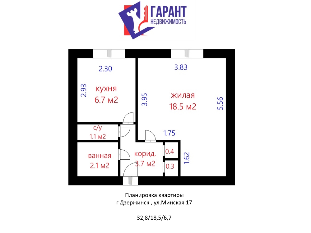 Площадь квартиры – 32,8 м2.