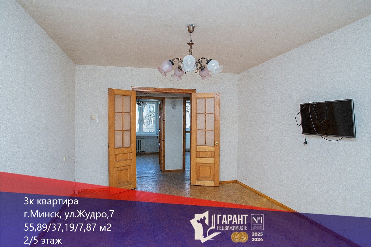 Всего в двух минутах легким шагом от станции метро "Спортивная" (ул. Жудро, 7) расположено это уютное жилье. Квартира находится на 2 этаже панельного дома 1973 года постройки (5 этажей). Общая площадь составляет 55,89 м² по СнБ.
