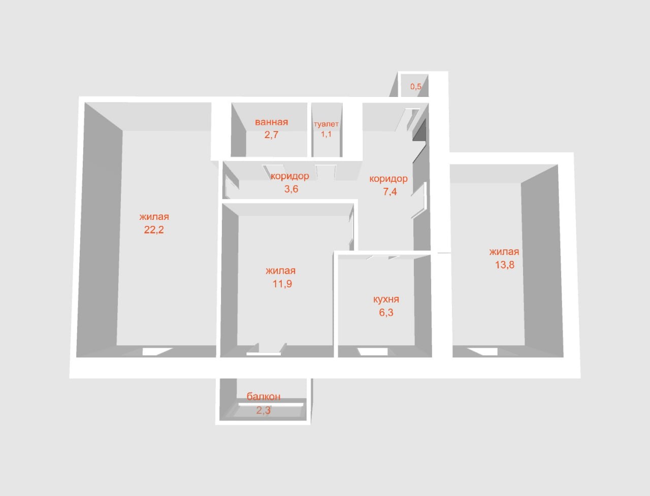 Три изолированные комнаты + раздельный санузел – удобство для всей семьи