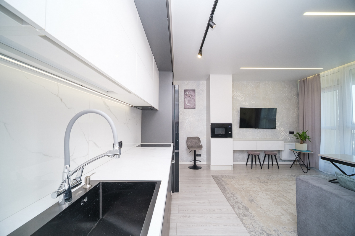 · Просторная кухня-гостиная станет центром притяжения для совместных вечеров и встреч с друзьями.