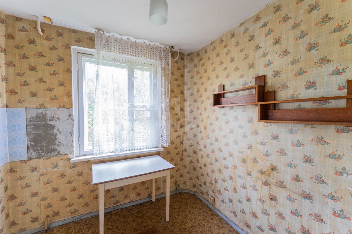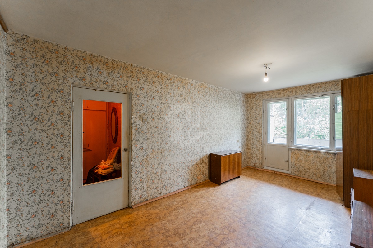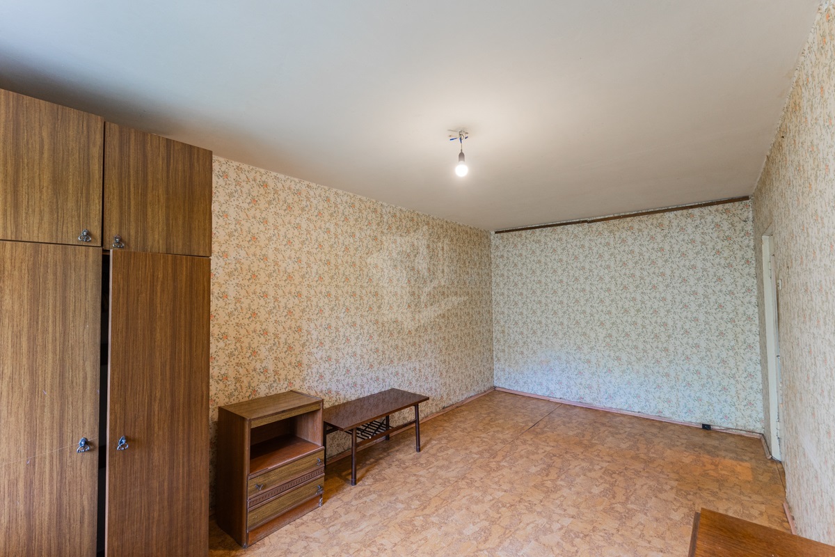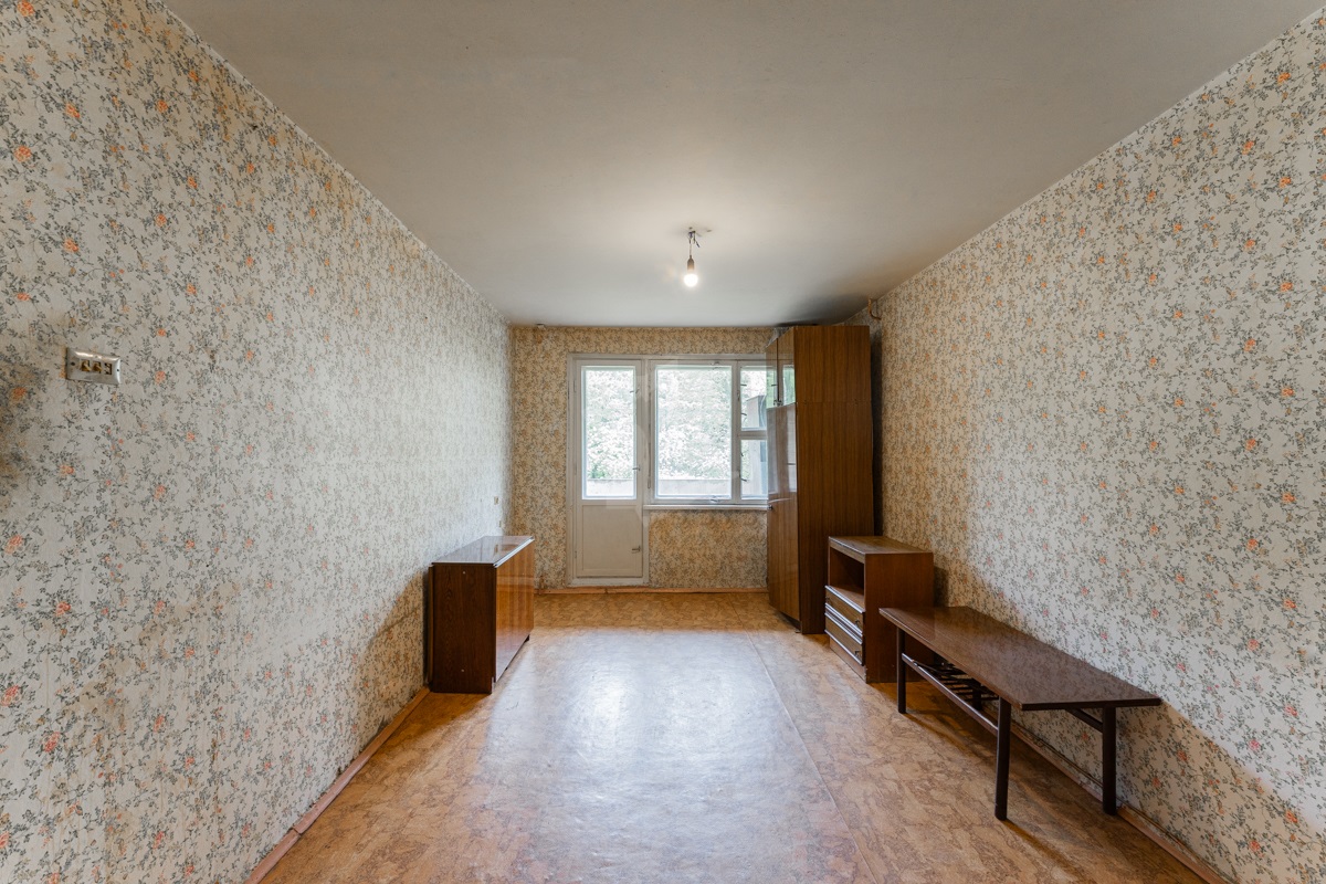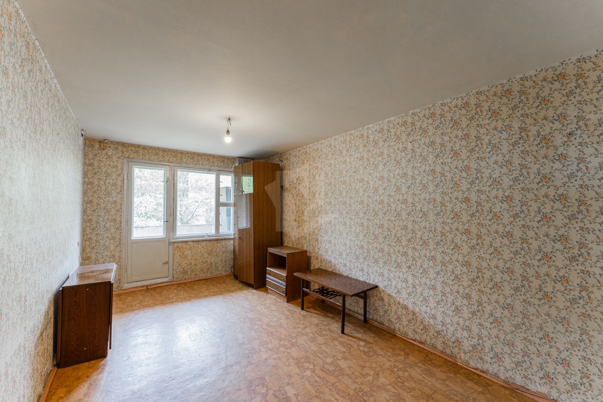 В квартире окна под замену, лоджия не застекленная. Пол – линолеум, на бетонной стяжке. Отличный вид из окна. Электрическая плита.