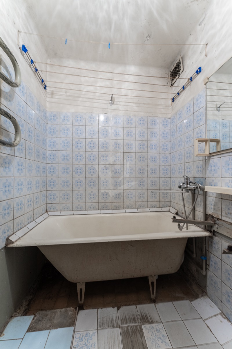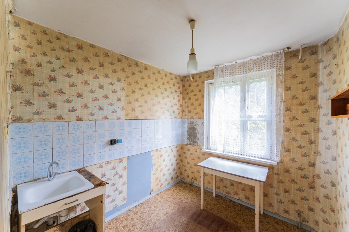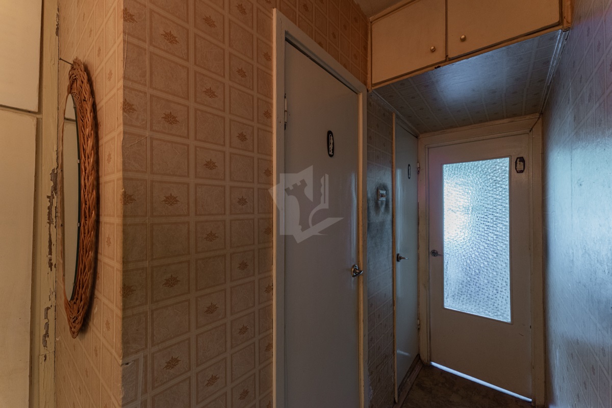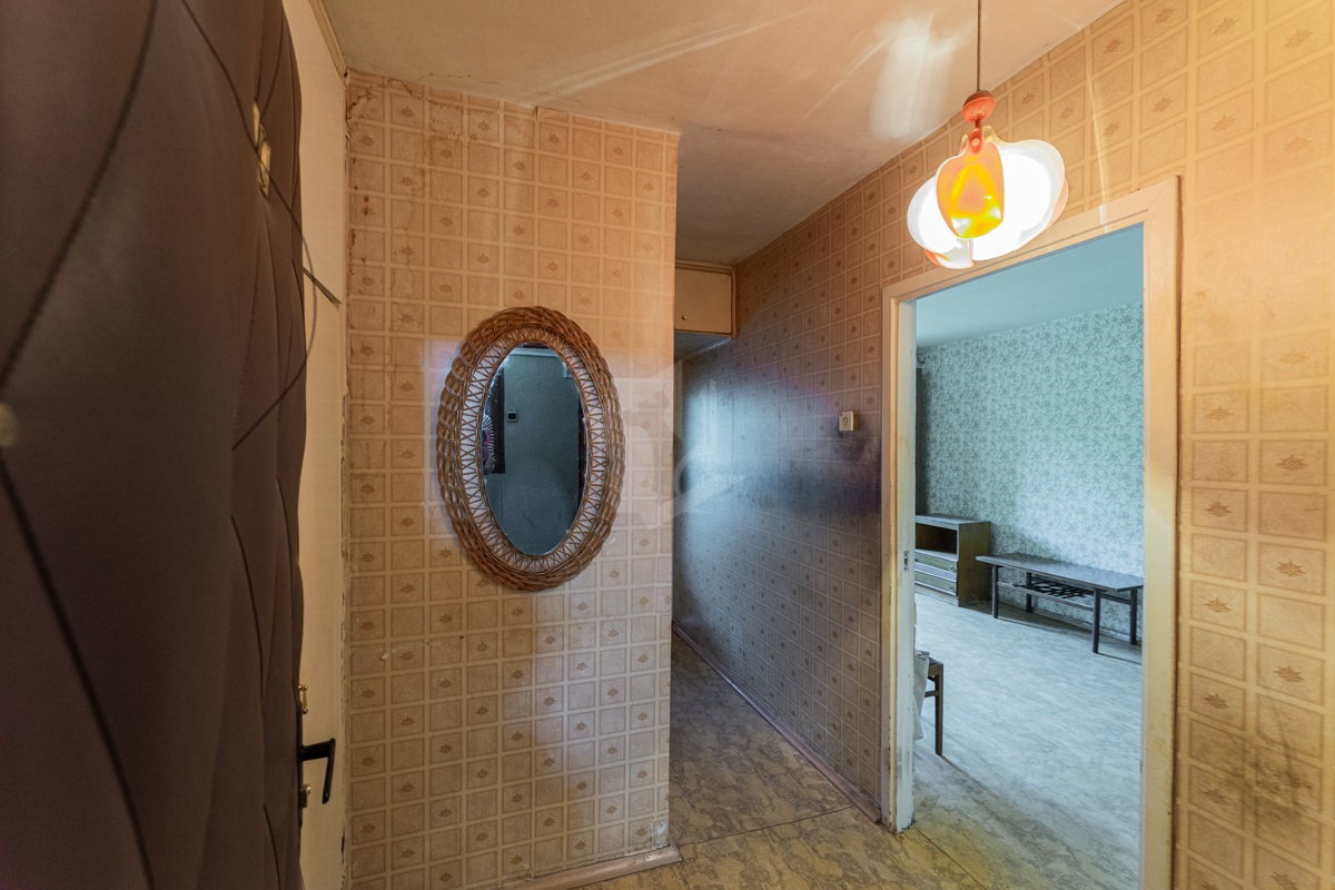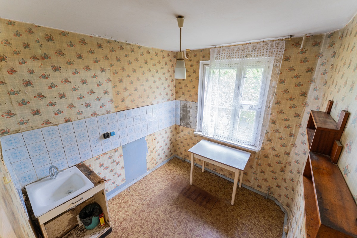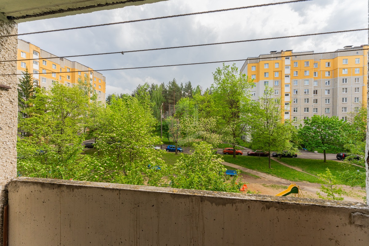 В квартире окна под замену, лоджия не застекленная. Пол – линолеум, на бетонной стяжке. Отличный вид из окна. Электрическая плита.