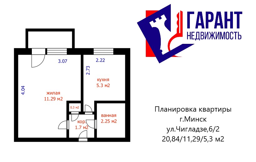 В продаже 1-комнатная квартира по адресу ул. Чигладзе, д.6.