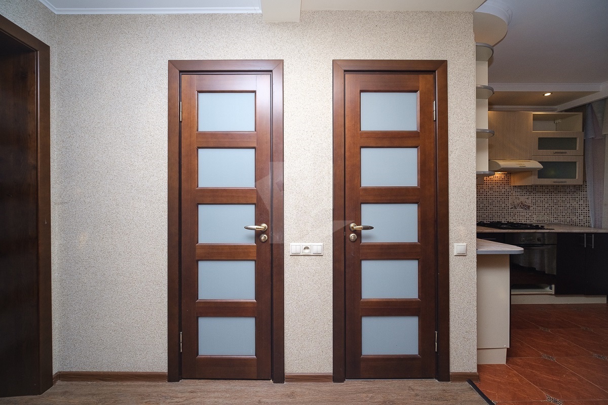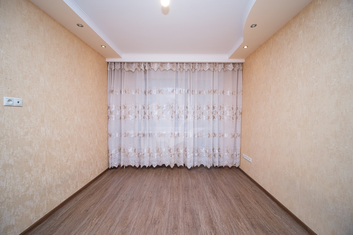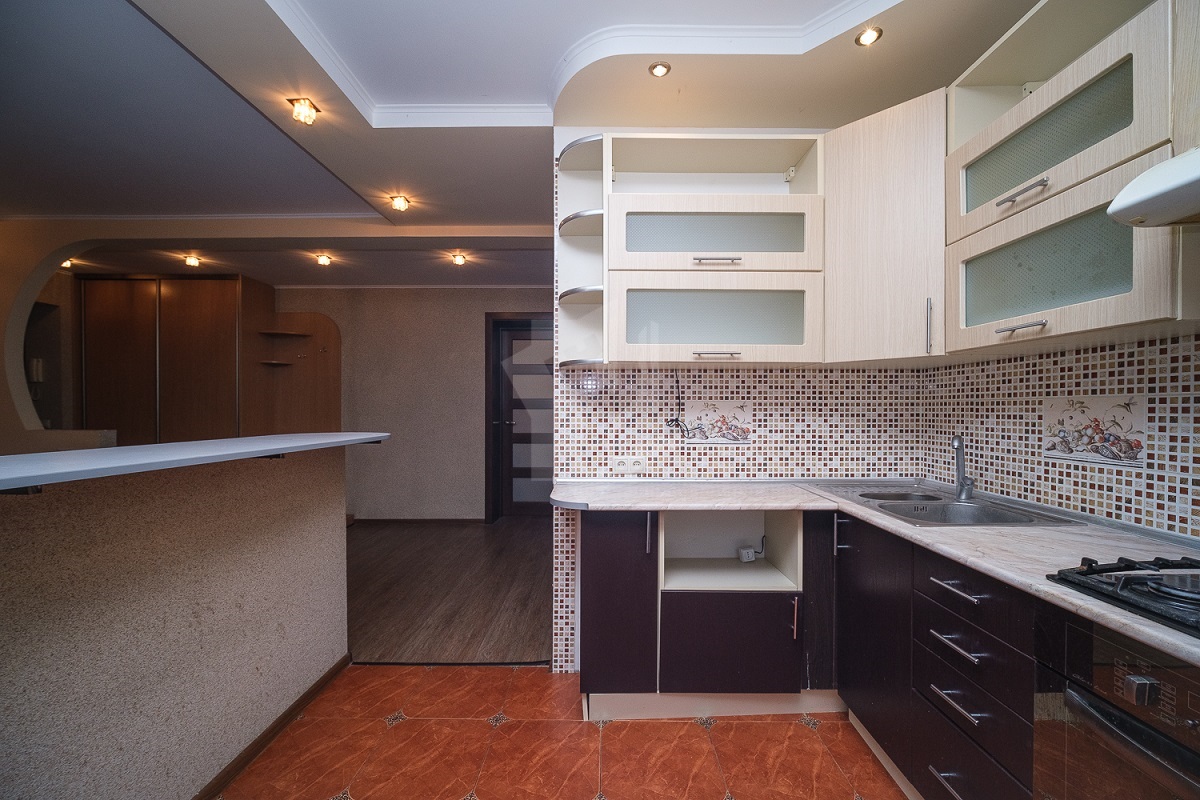 - Качественный ремонт включает замену всей проводки, сантехники и трубопроводов, полы покрыты ламинатом и плиткой, окна и балкон остеклены современными рамами ПВХ, потолок — гипсокартон, выполнены два уровня с подсветкой.