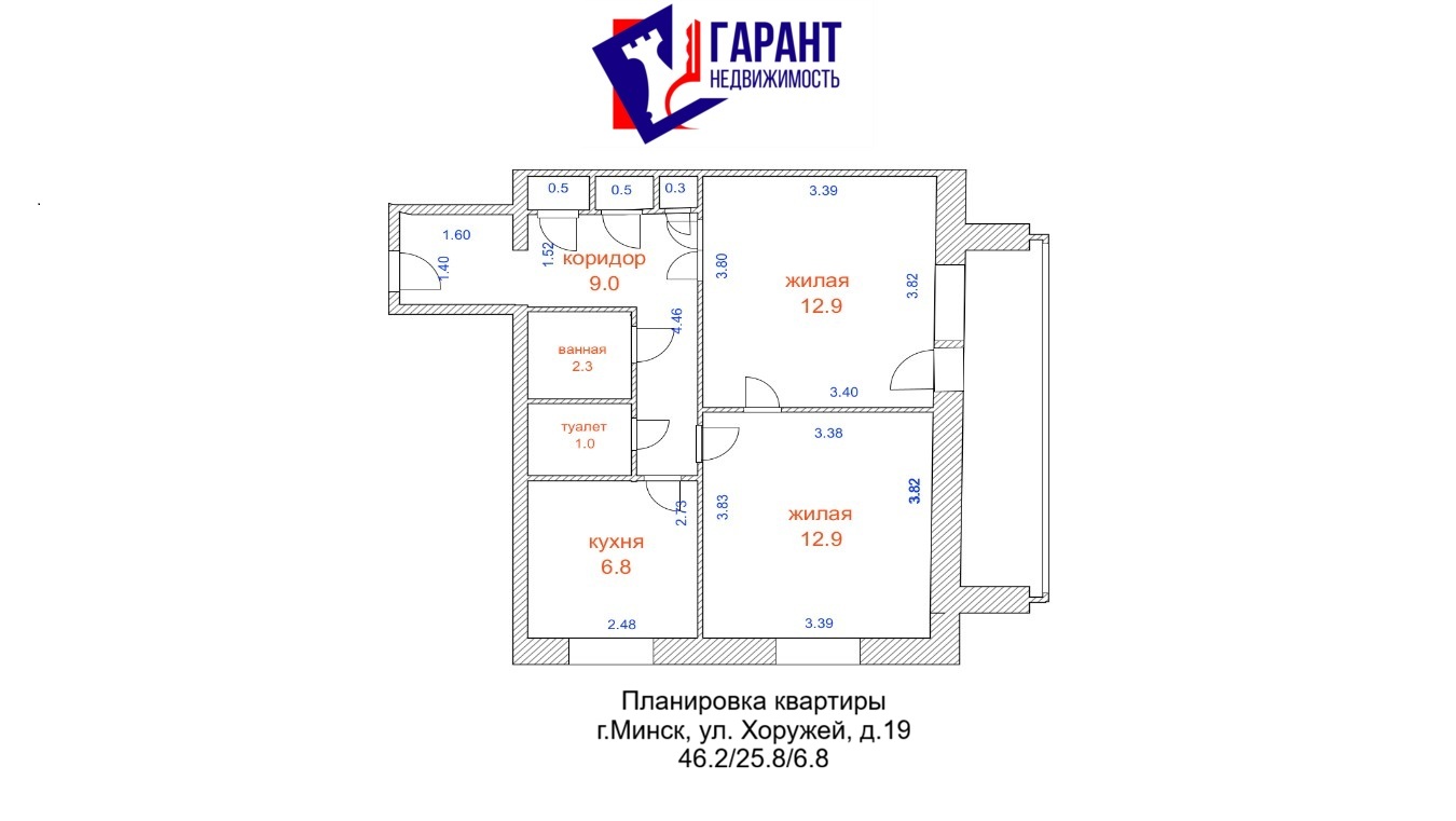 Встречайте — двухкомнатная квартира на улице Хоружей, 19 (Советский район, звучит гордо, правда?).