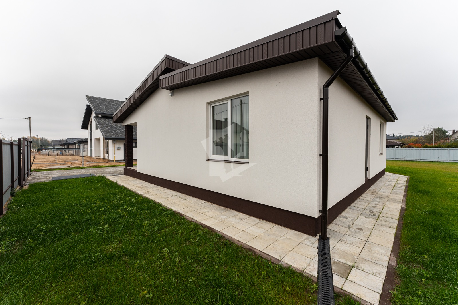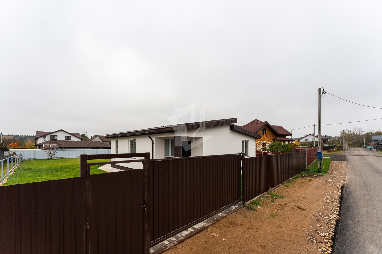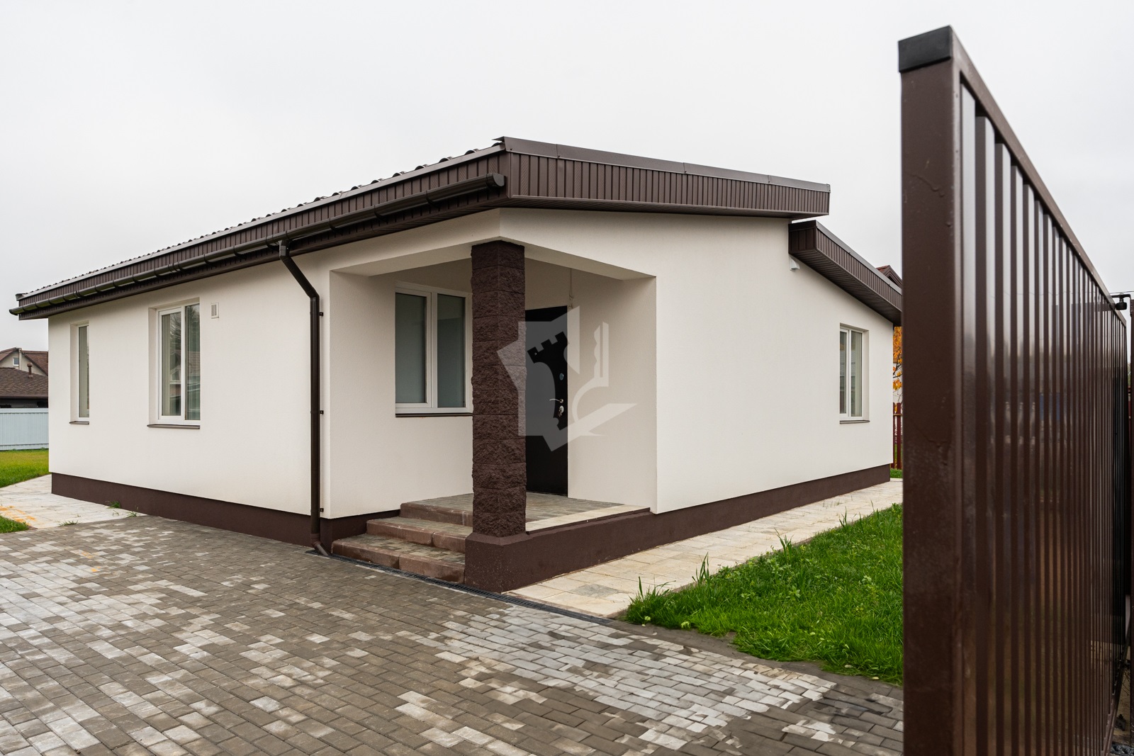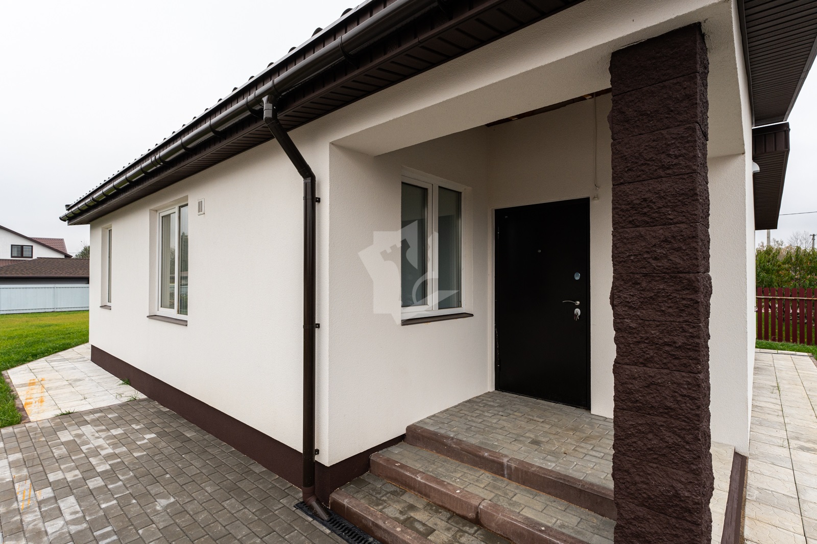 Сам участок - 10 сот (правильной, многоугольной формы, ровный, выполнено озеленение), дом - общей площадью 89,3 м2 + терраса – 23,2 м2.