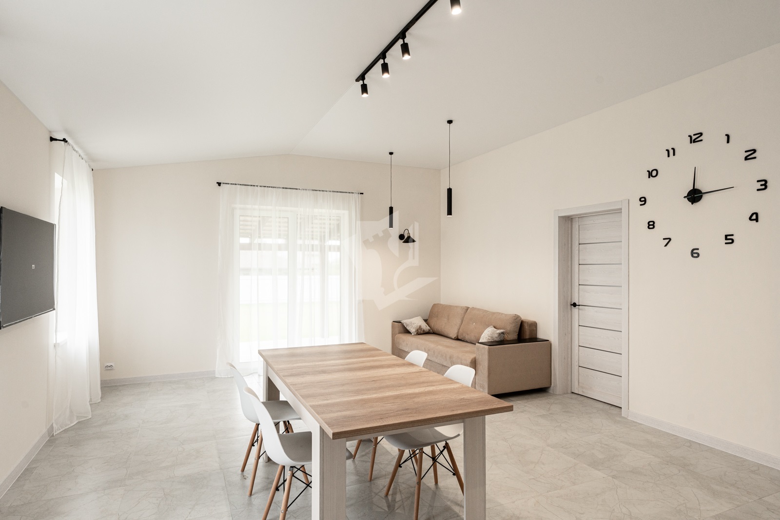 В самом доме разведена электрика, сантехника, по всем помещениям выполнены теплые полы. Котел электрический. Есть возможность подключения к газу. По всем помещениям выполнена чистовая отделка.