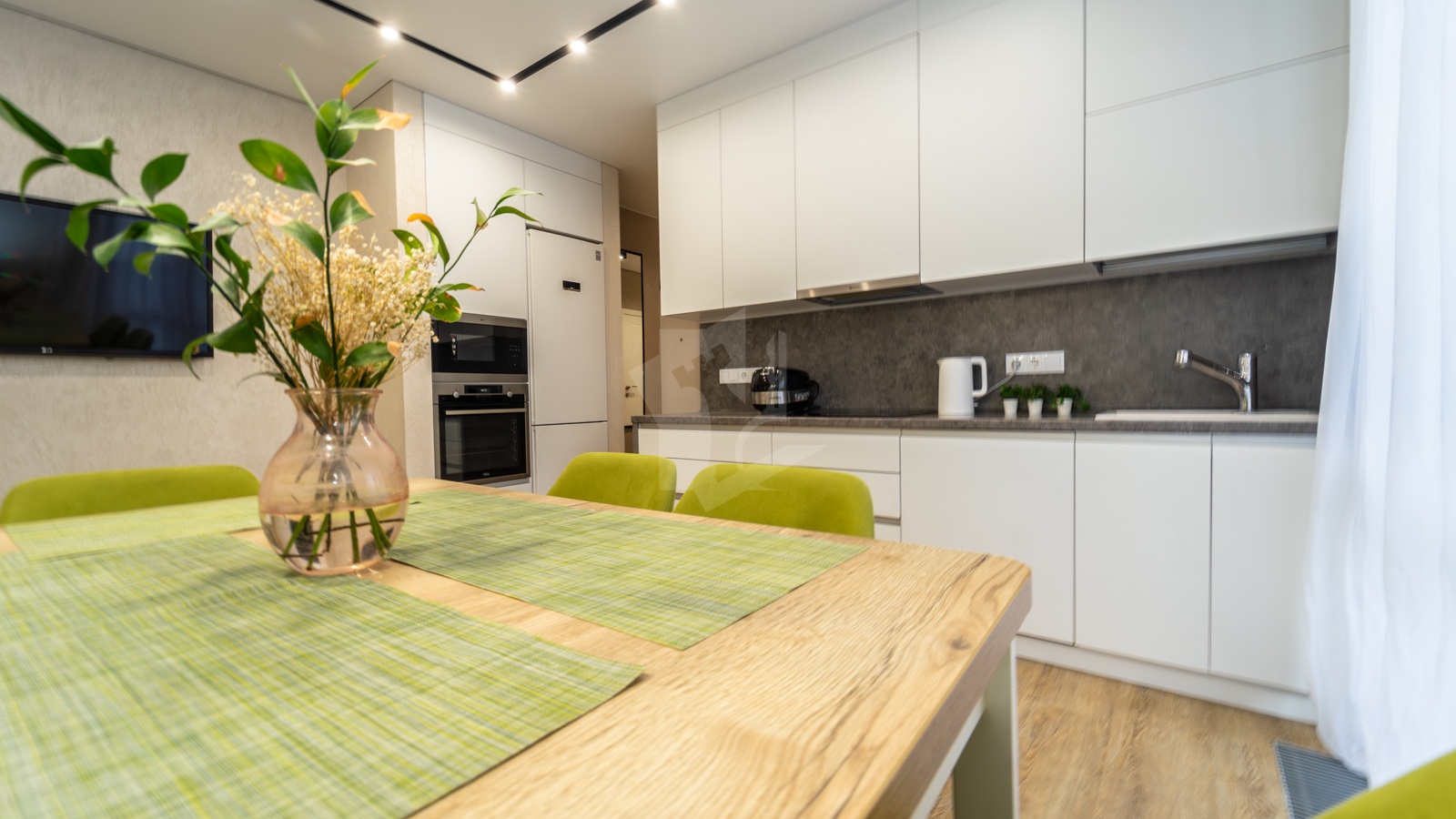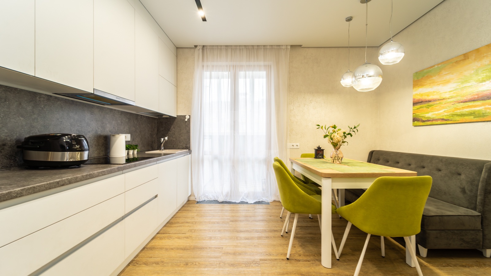 o Кухня 16,5 м2 — простор для кулинарии и общения.