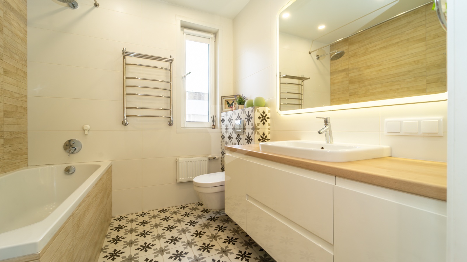 o Ванная с мини-окном (естественный свет и вентиляция).