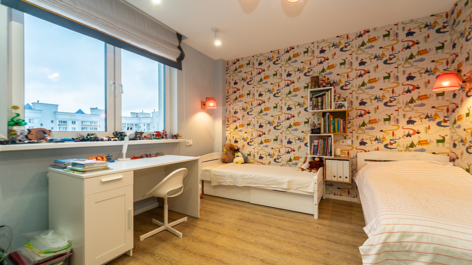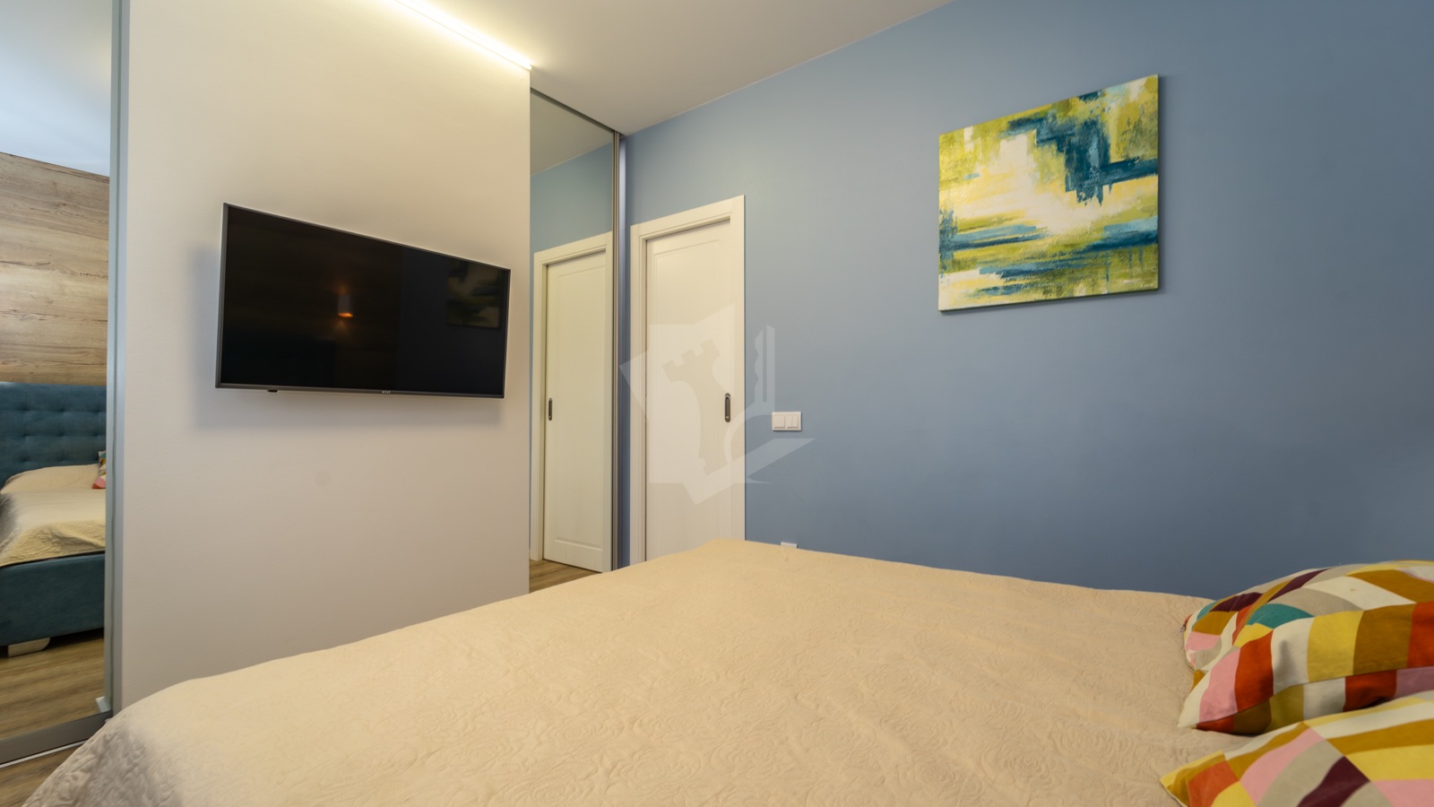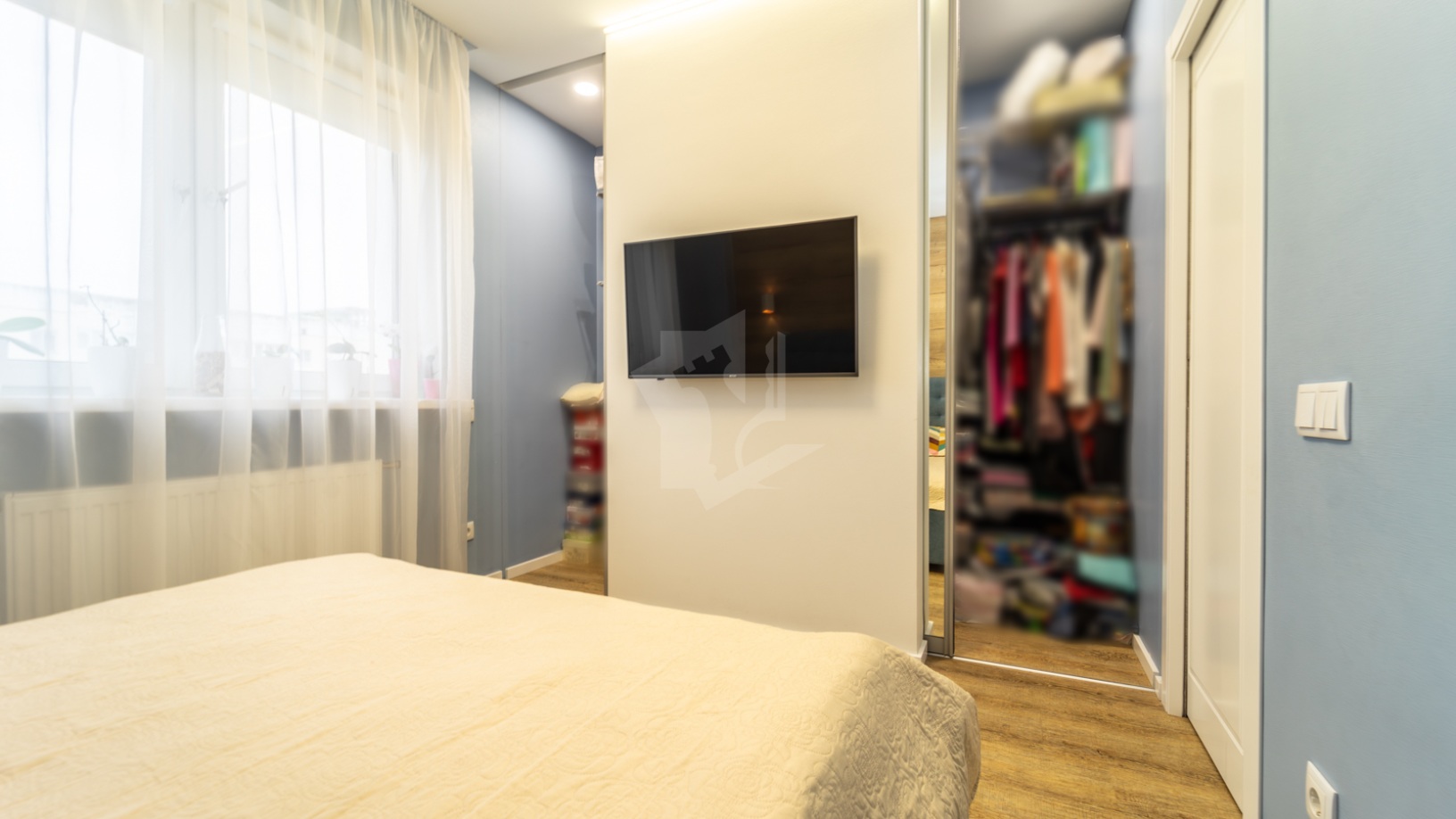 o Спальня с двухсторонним гардеробом — умное хранение вещей.