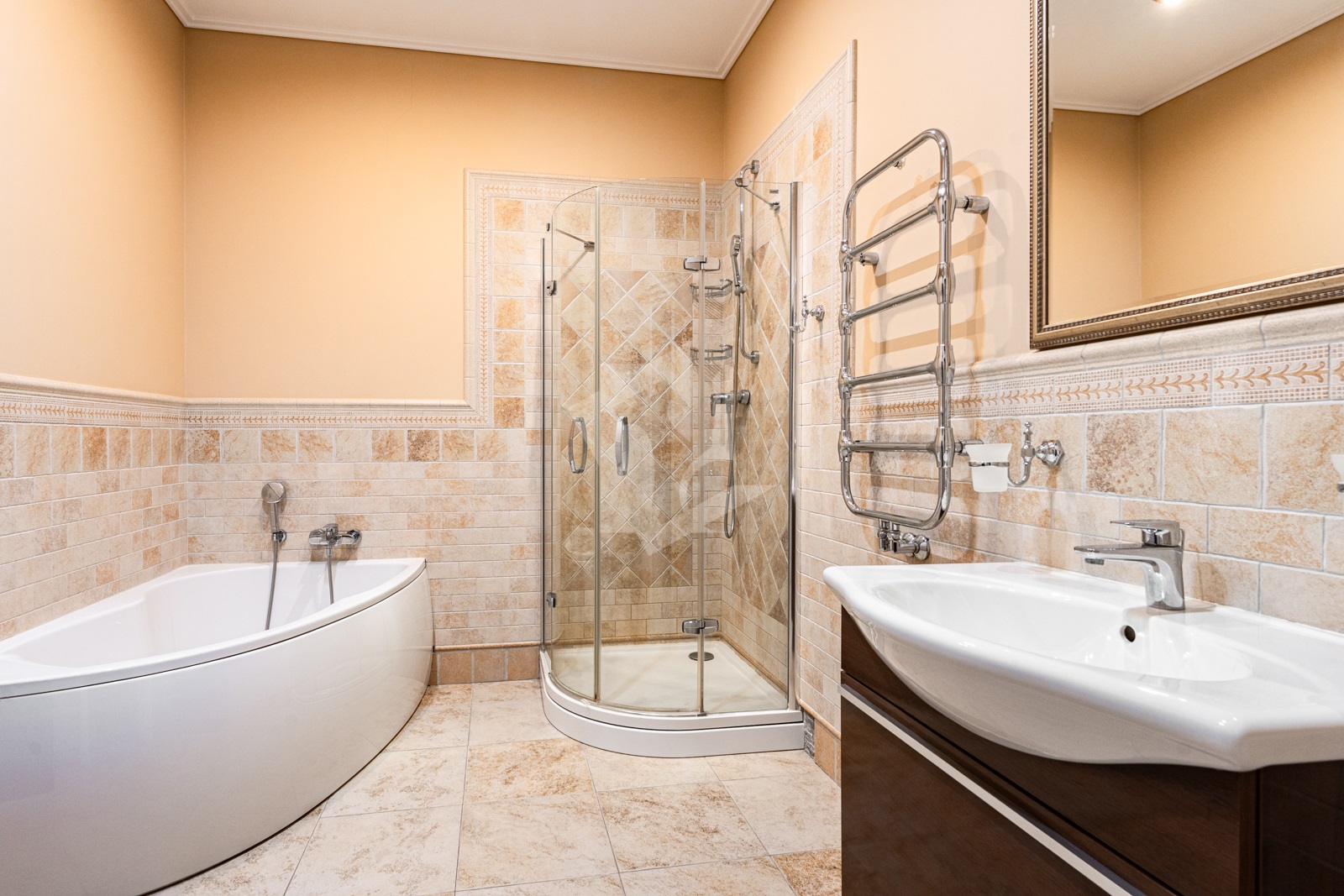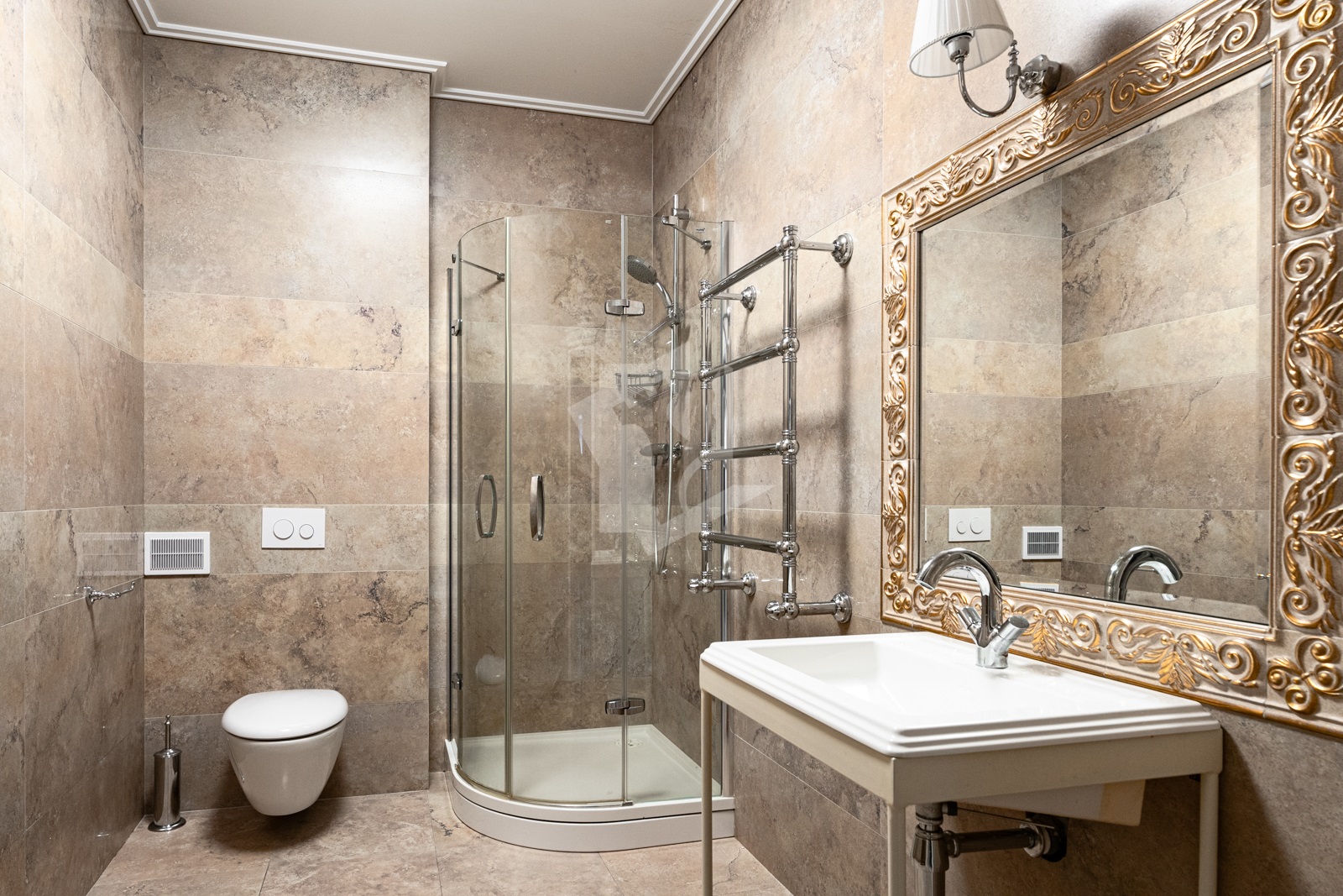 - Три санузла с премиальной сантехникой ,облицованы плиткой.