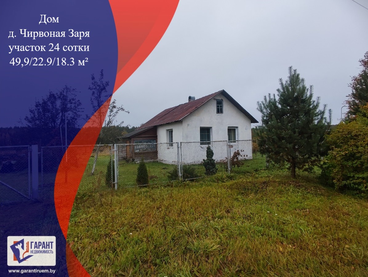 На участке в 24 сотки располагается новый сруб для бани , высажены плодовые деревья и кустарники. Предусмотрена мангальная зона, беседка, качели. Приезжает автолавка . Больше магазинов и инфраструктуры располагаются в 5-ти минутах езды на автомобиле в агрогородке Метличицы. Д.Чирвоная Заря – тихое, спокойное место с доброжелательными соседями.