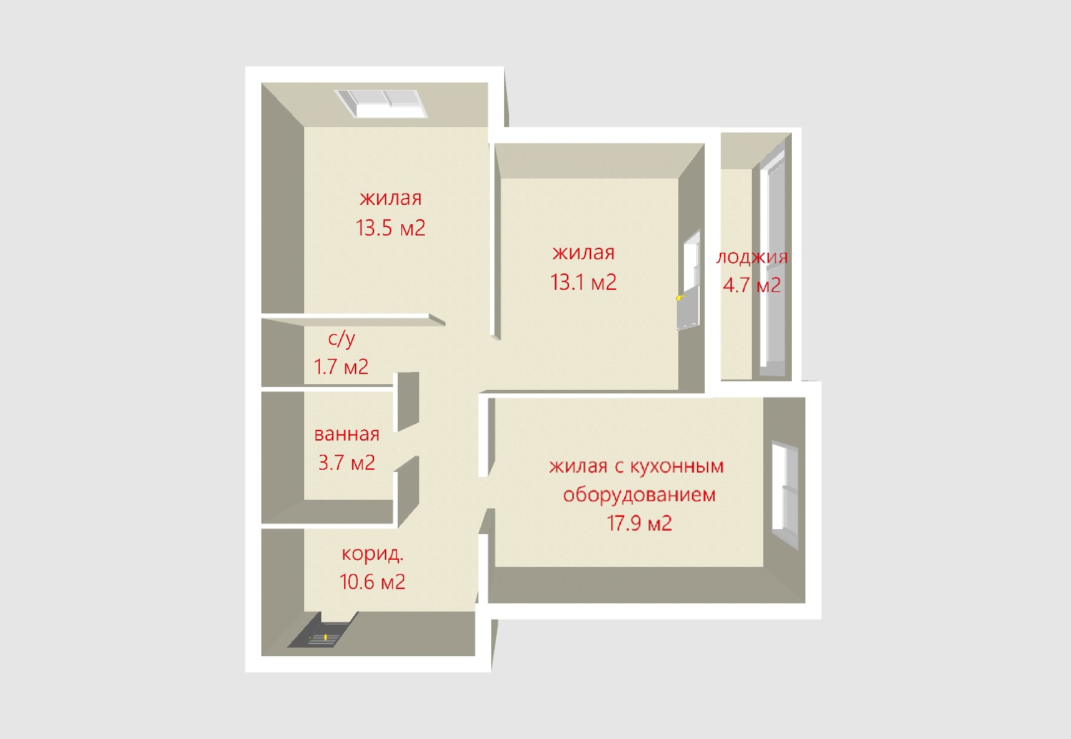 47.5 / 19.5 / 12 м²