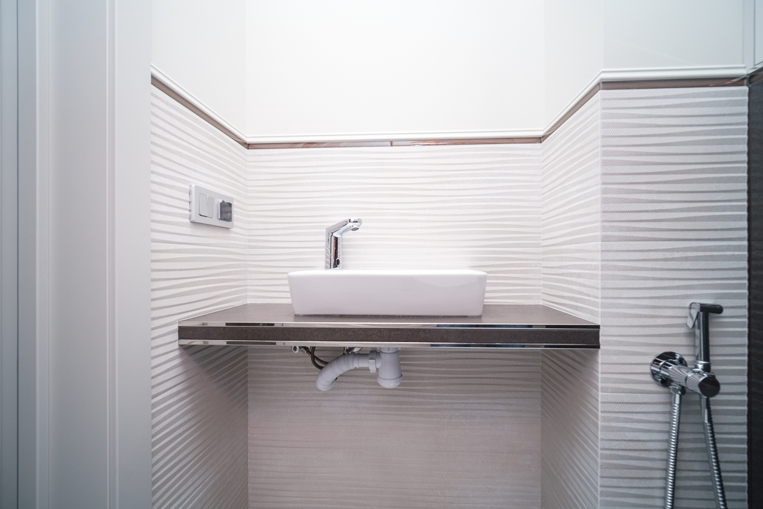 Санузел: раздельный, сантехника Grohe (Германия), современная душевая кабина.