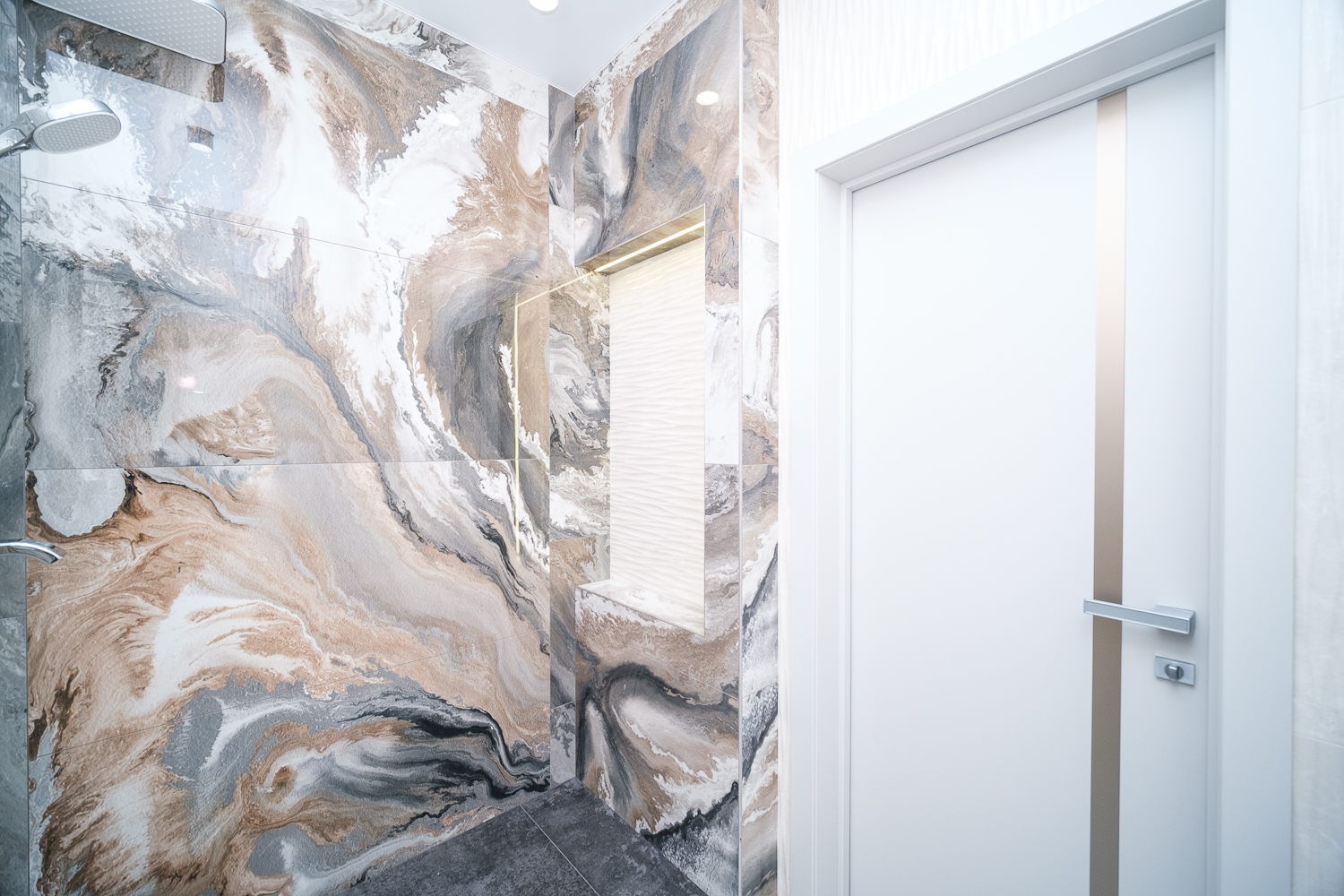 Полы: паркетная доска, керамогранит (зафугован эпоксидной затиркой UTOKOL.