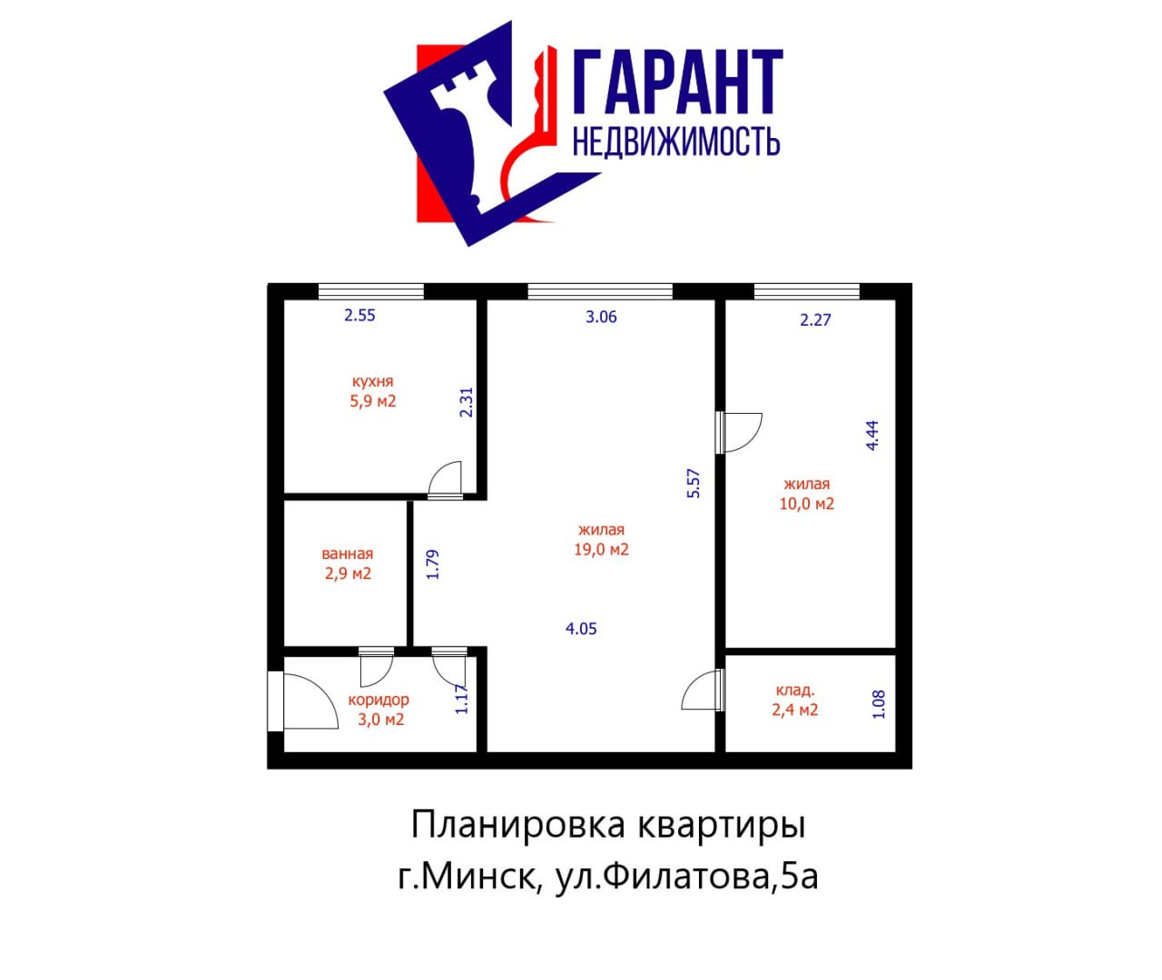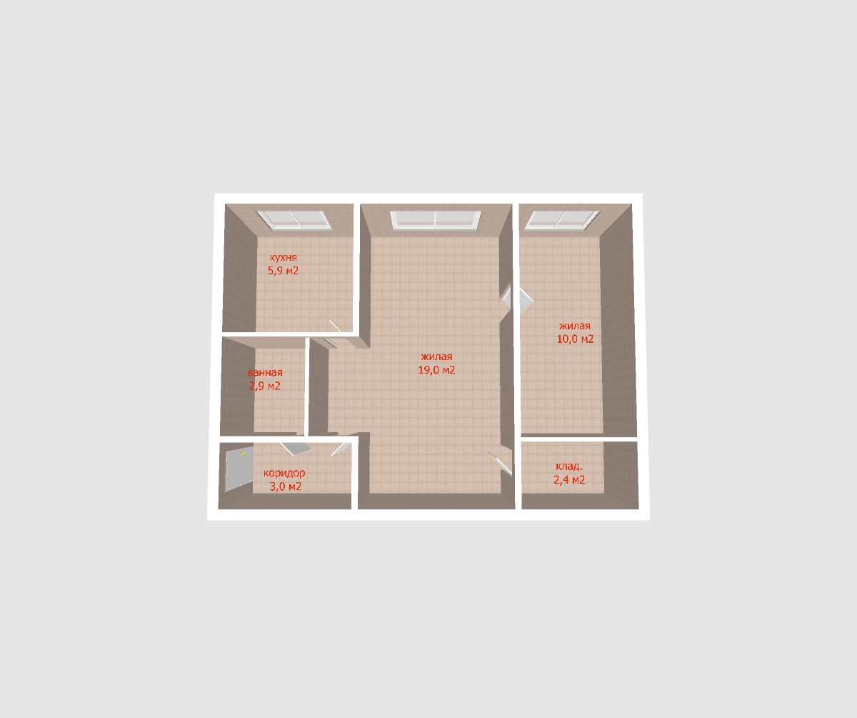 Площадь комнат: 10 м2 и 19 м2